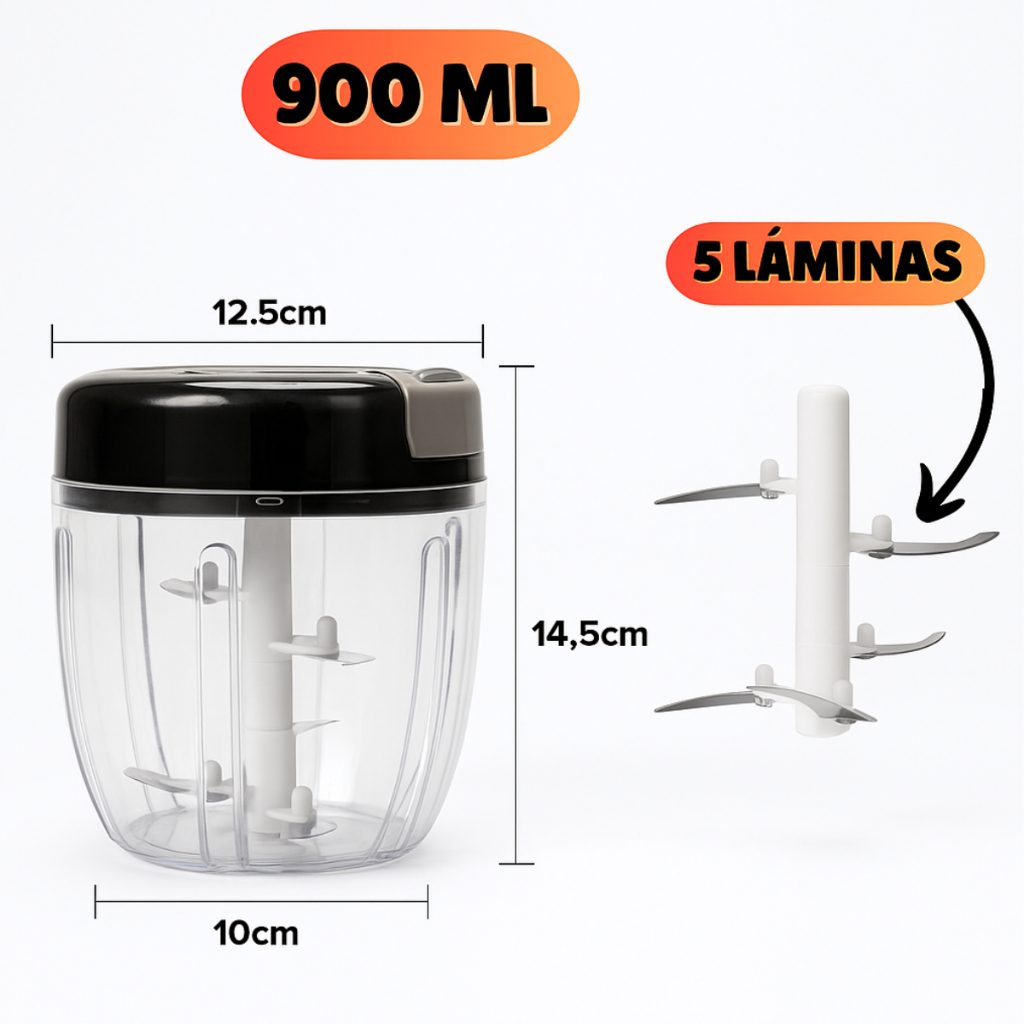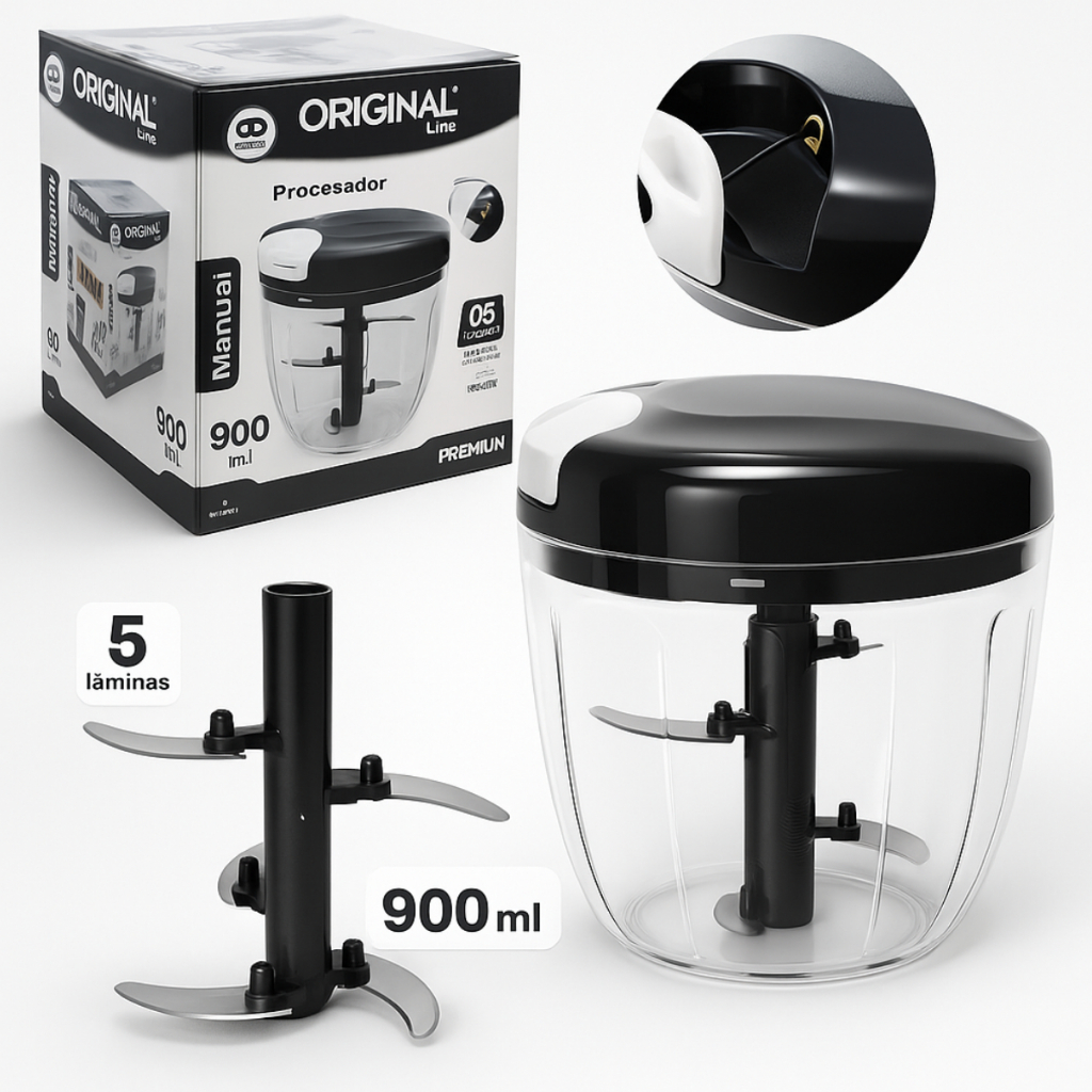 Processador Manual de Alimentos 900 ml Triturador Grande Alho Cebola Legumes Carne
