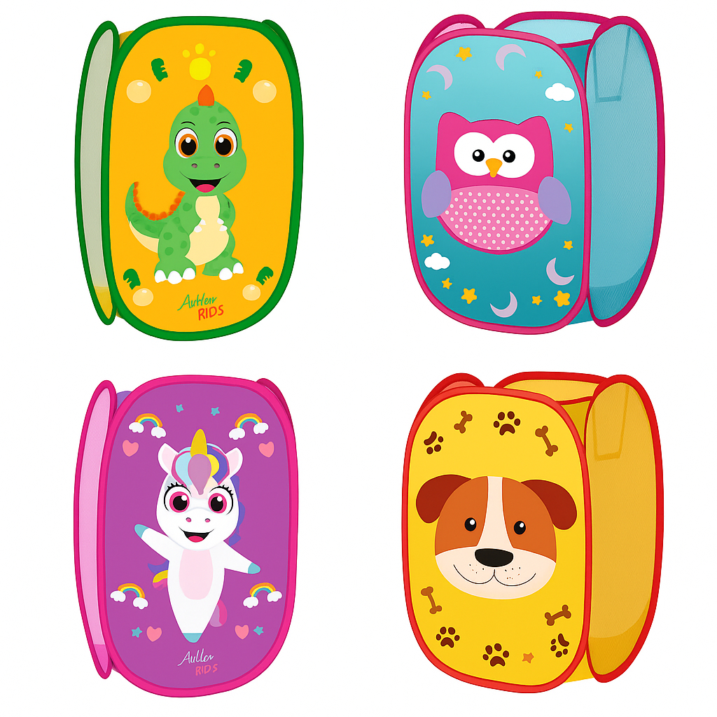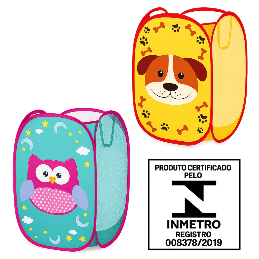 Cesto Roupa Organizador Brinquedos Infantil Bebe Dobrável Menino e Menina