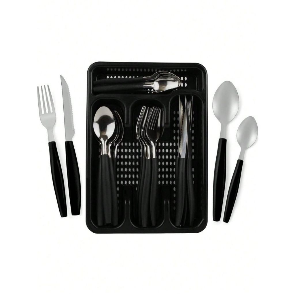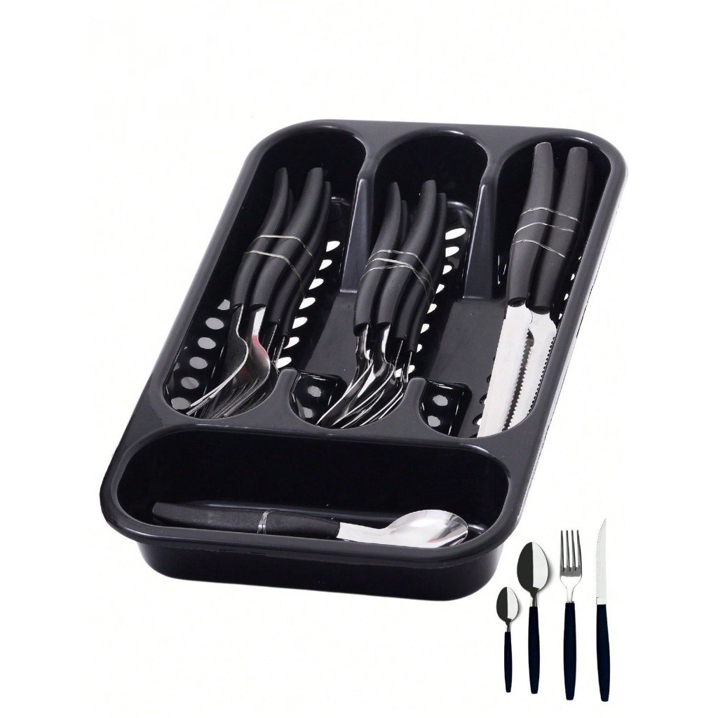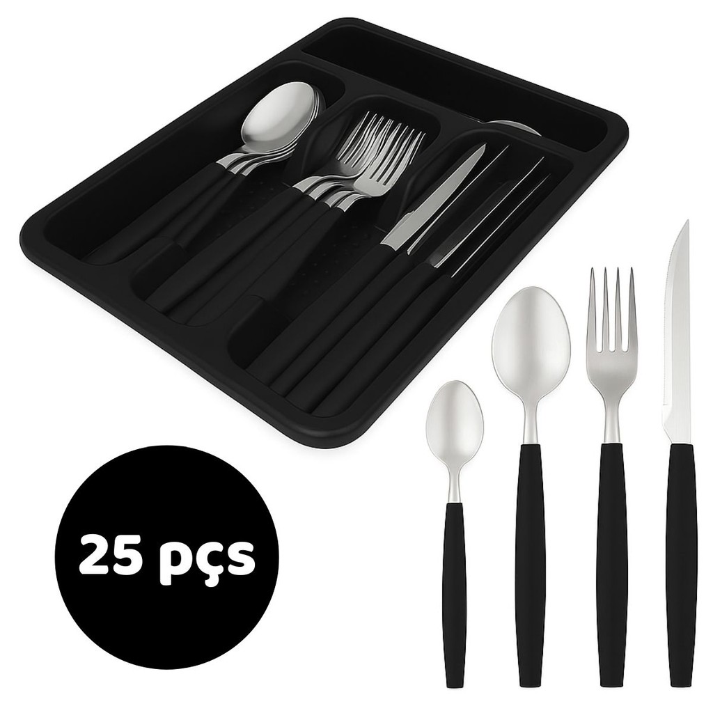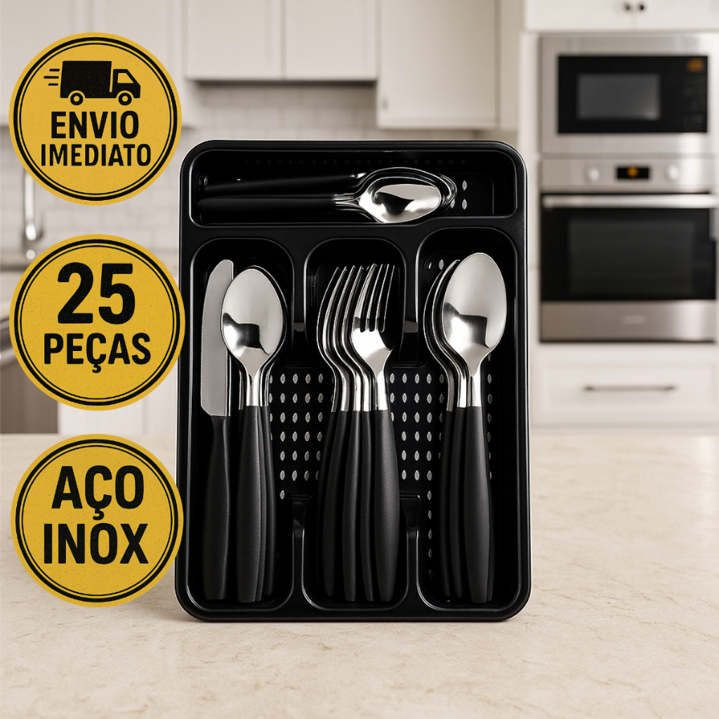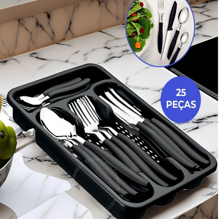Faqueiro Jogo De Talheres 25 Peças Inox Com Porta Talheres Garfos Colheres E Facas