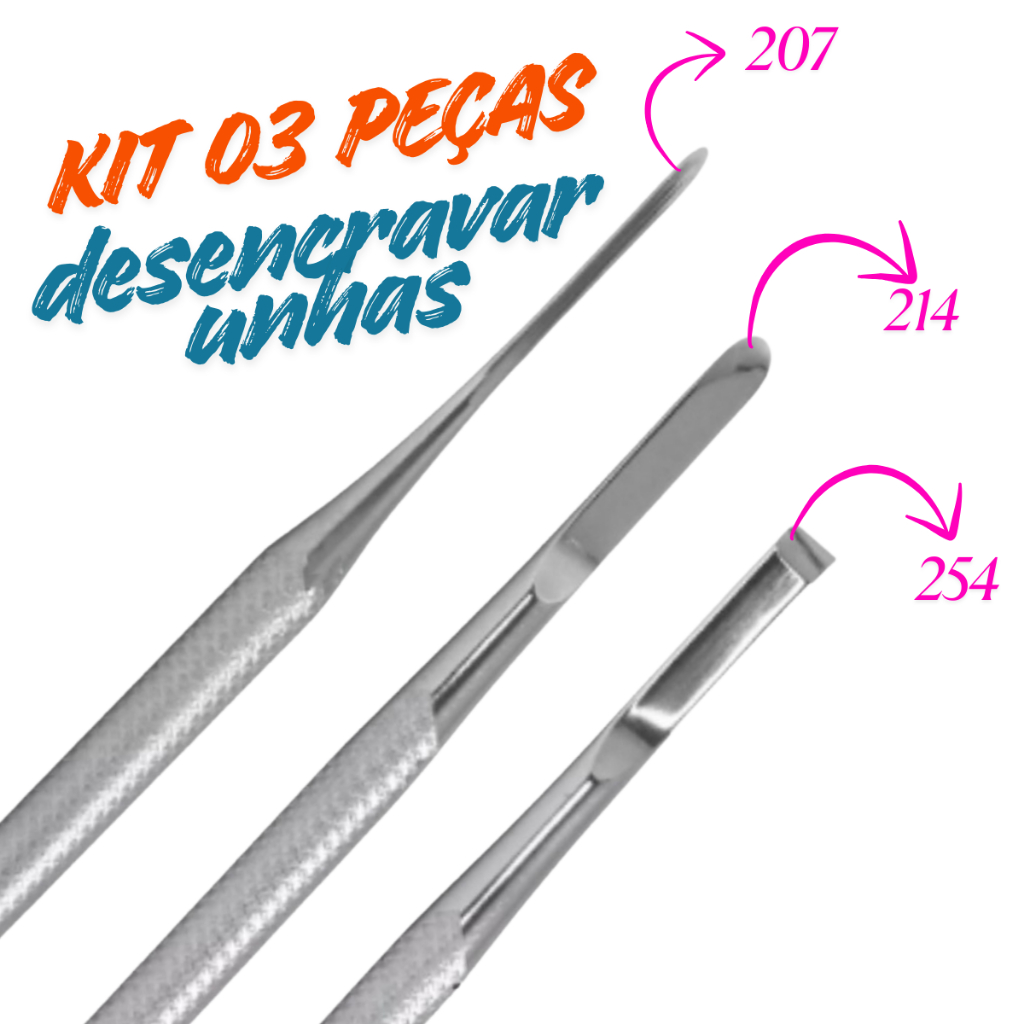 Kit 03 peças Bisturi 207, 214 Formão 254 manicure desencravar unha do pé