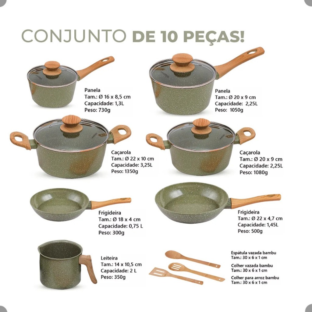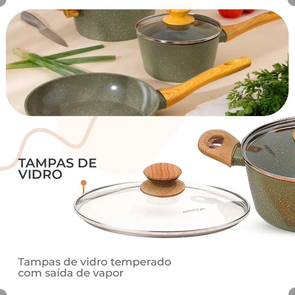Jogo De Panelas Antiaderente Cerâmica Mimo Style 10 Peças Premium