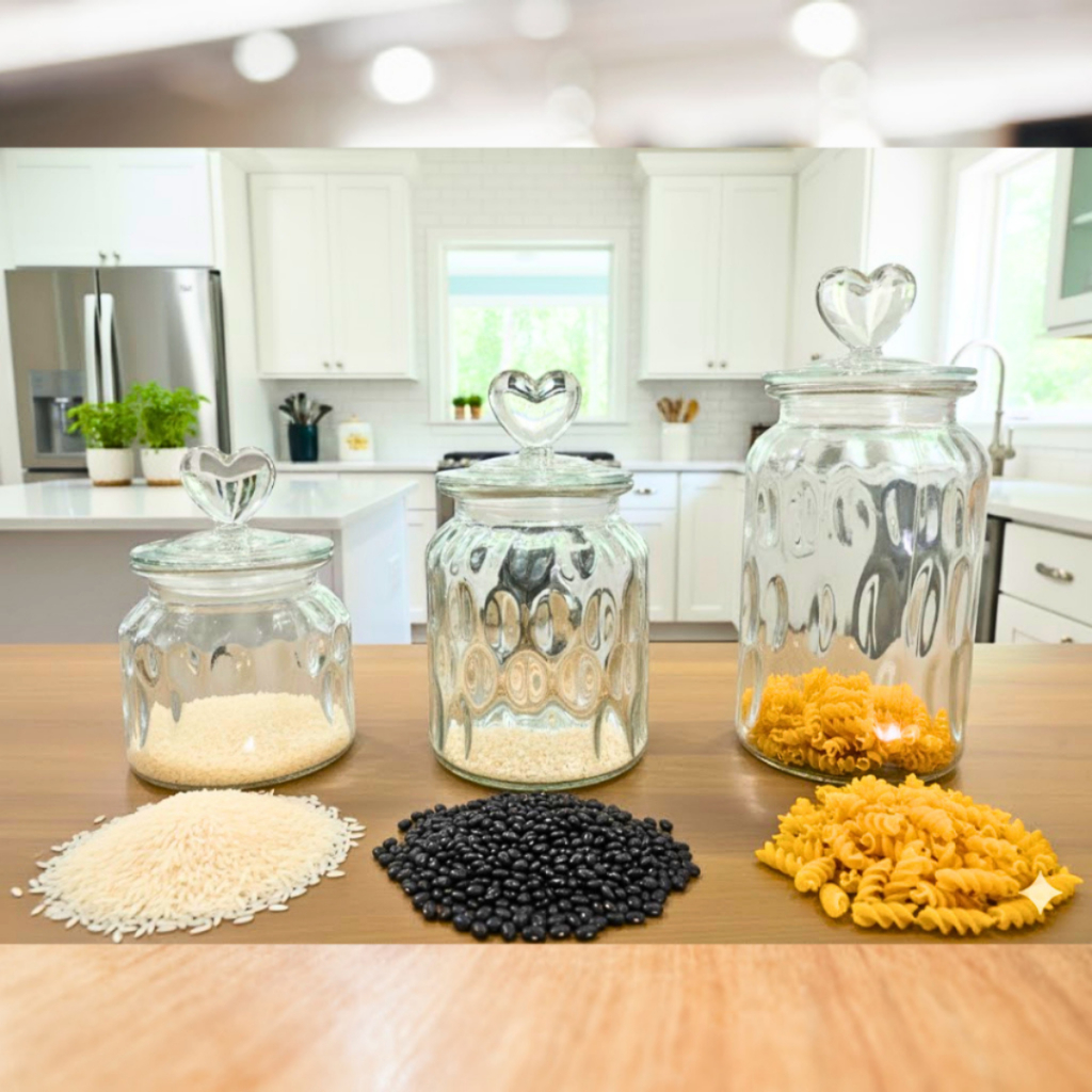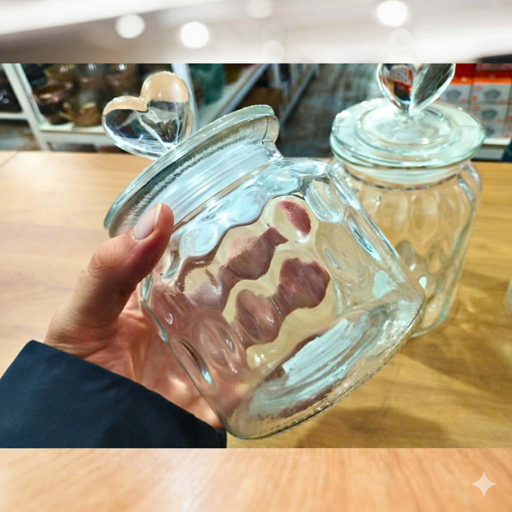 Pote Hermética de Vidro com Tampa de Coração Porta Balas/Doces/Grãos 620mL/950mL/1350mL