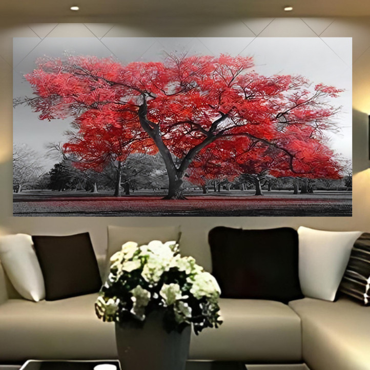 QUADRO TELA DECORATIVA YPE VERMELHO FLORAL VERTICAL 4K FULL HD 115x80 PAINEL UNICO ALTA QUALIDADE 4k