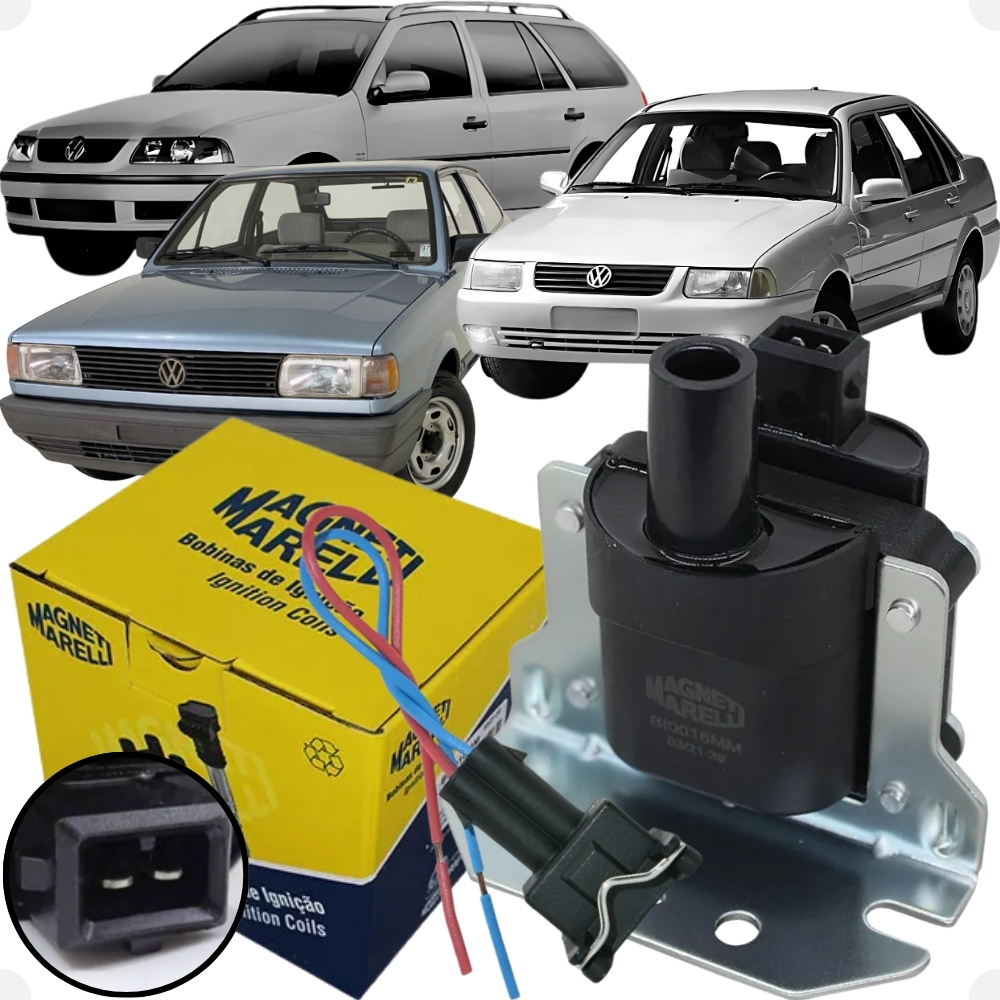 Bobina de Ignição com Chicote Gol Parati Saveiro Mi 1.0 1.6 1.8 2.0 8v 2 Pinos