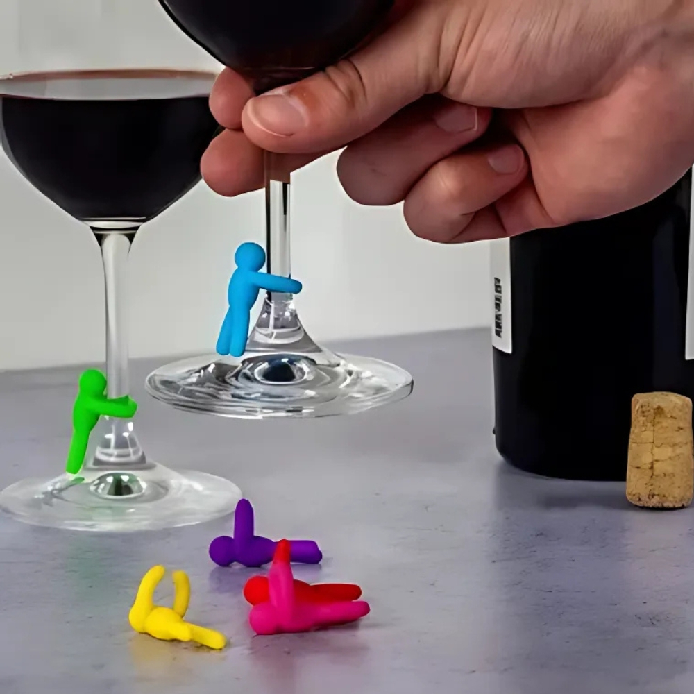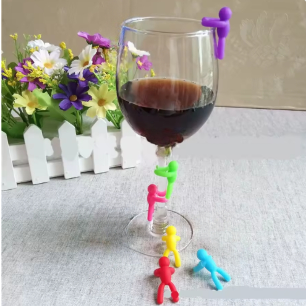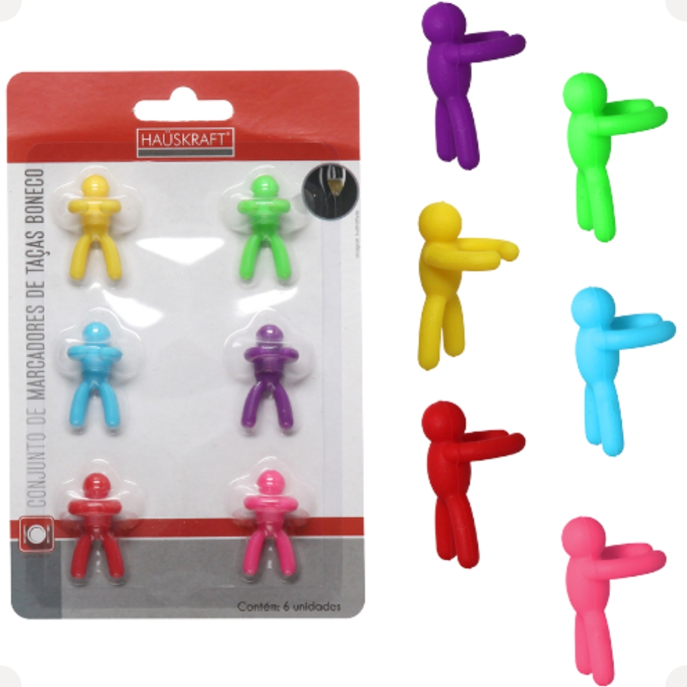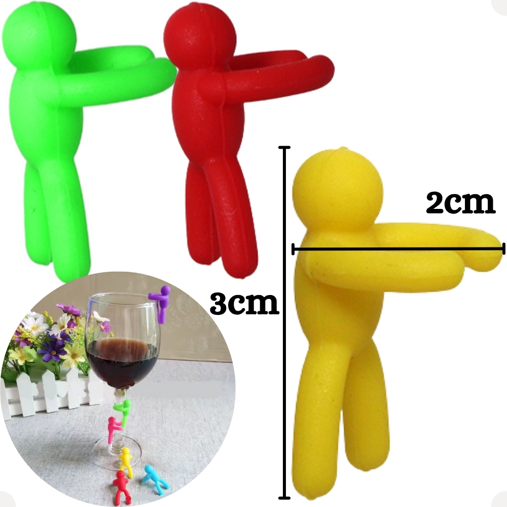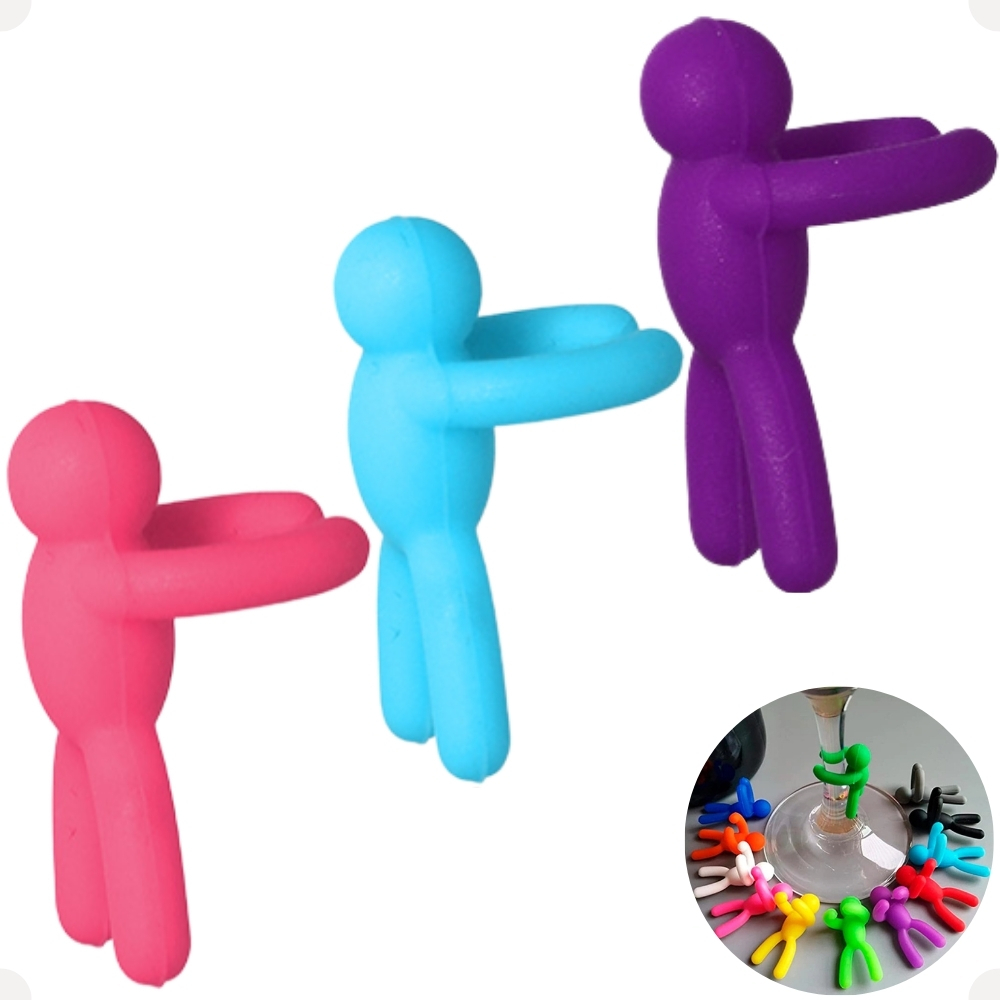 Conjunto Com 6 Marcadores Para Taças E Copos Bonecos De Silicone Coloridos 2 x 3cm eventos Hauskraft