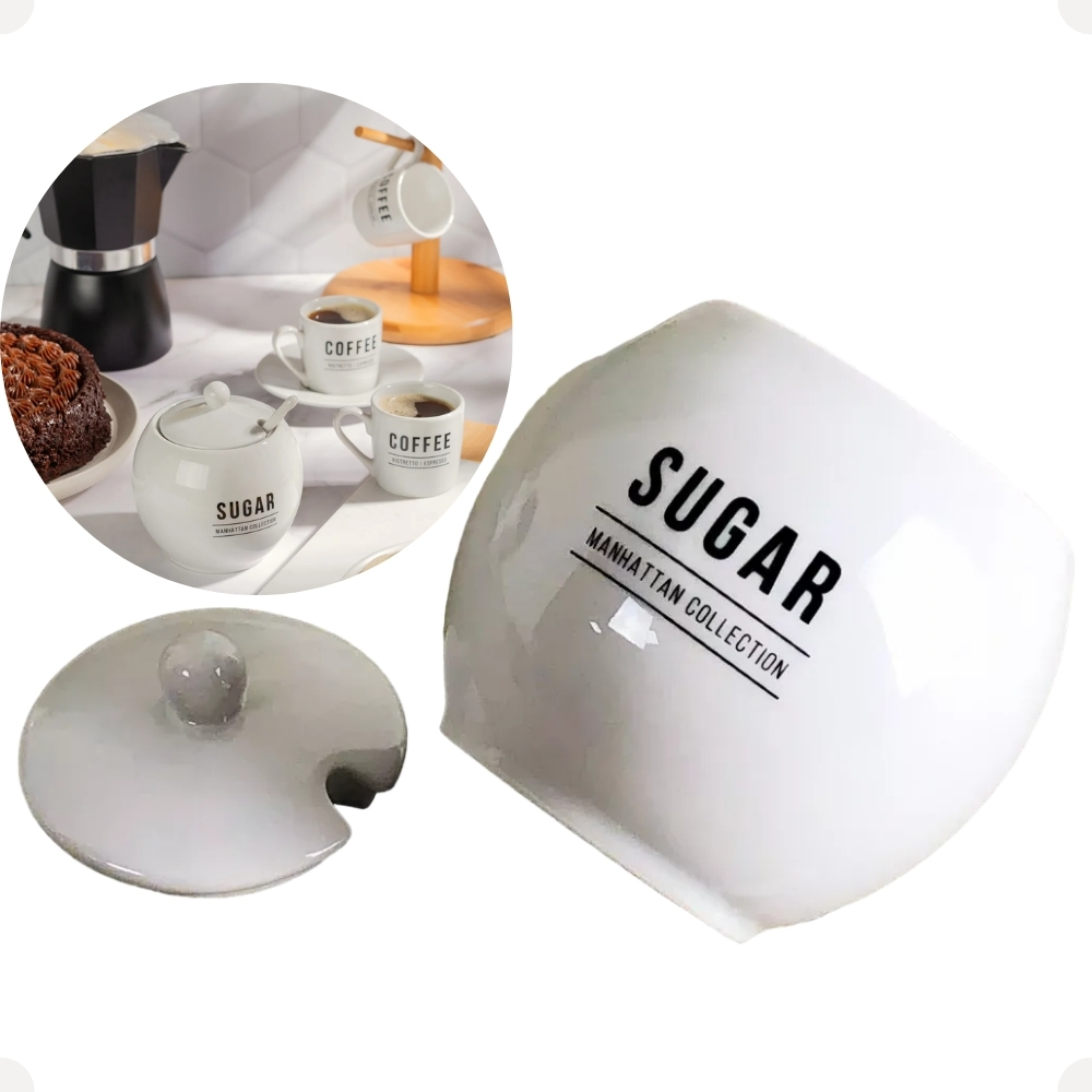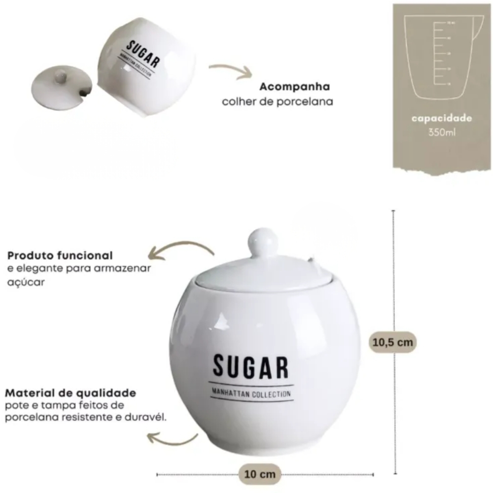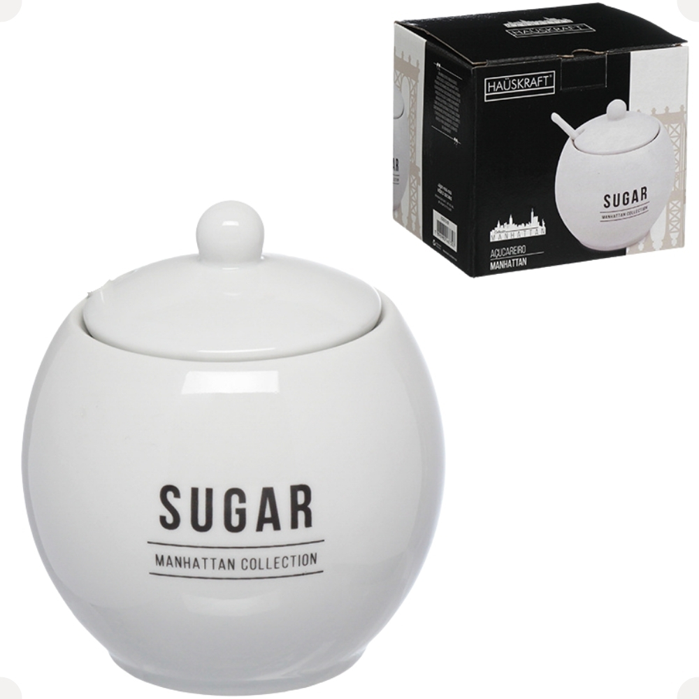 Açucareiro Manhattan Em Porcelana Com Tampa 350ml Branco Porta Açúcar ACRO010/BR da Haüskraft