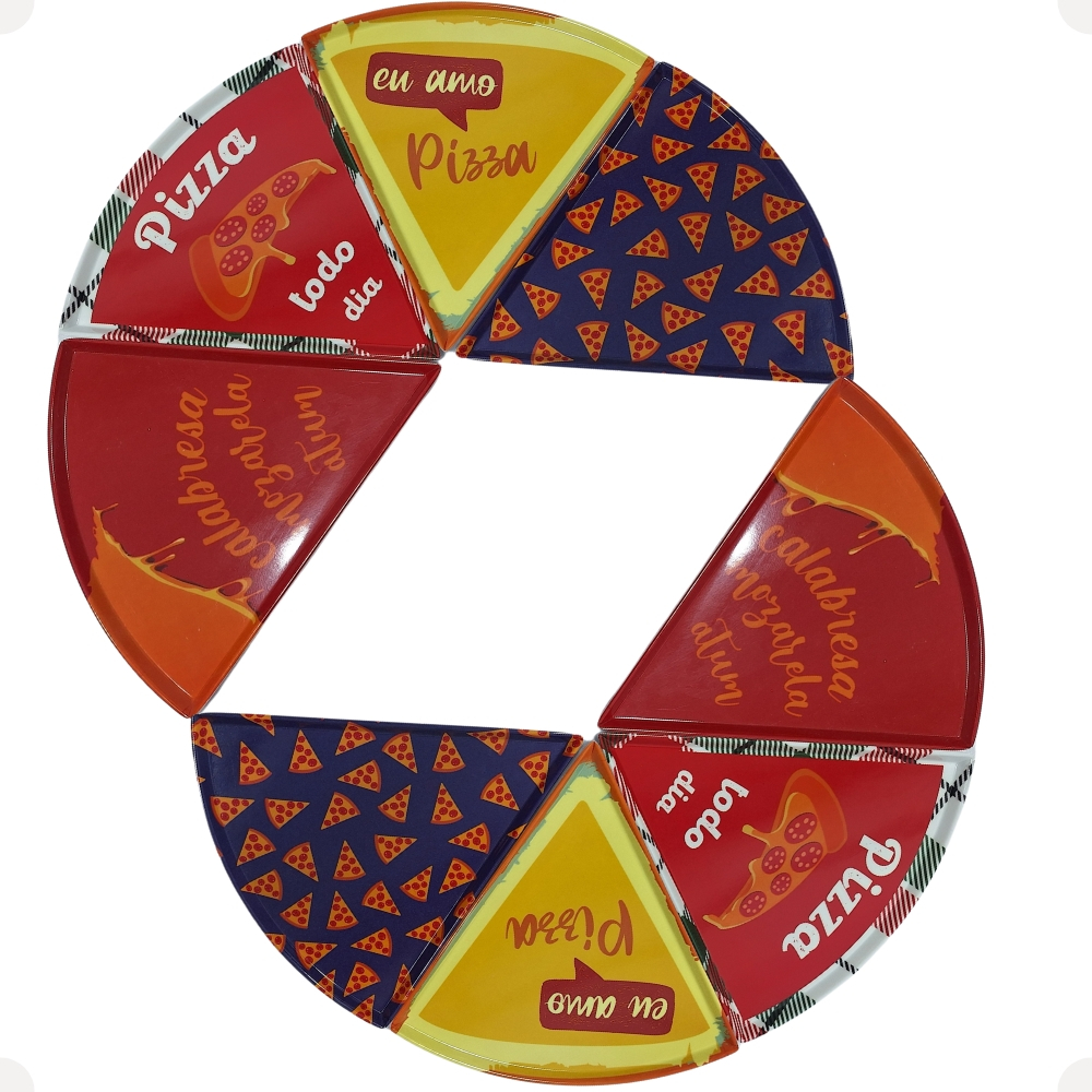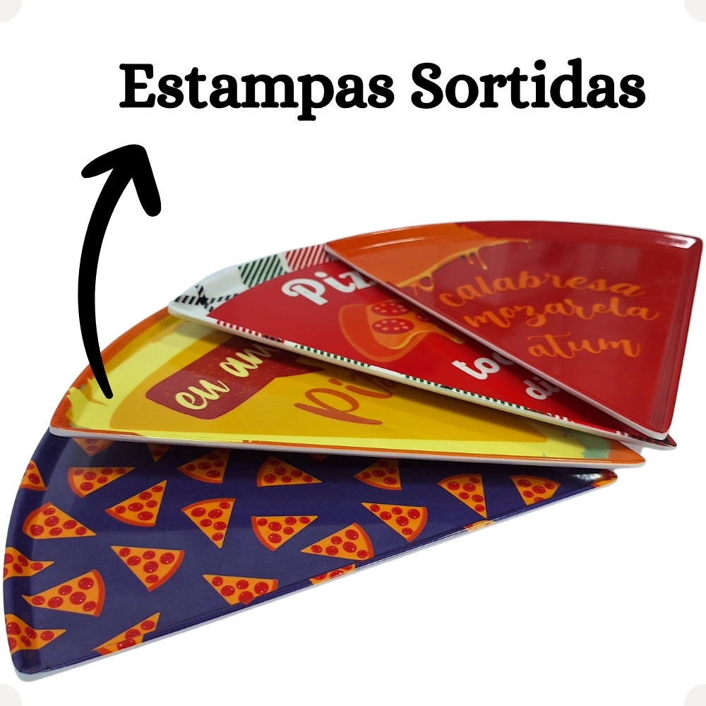 Conjunto Com 8 Pratos de Pizza Triangular de 22 cm Estampados Em Melanina Estampas Sortidas Fatias.