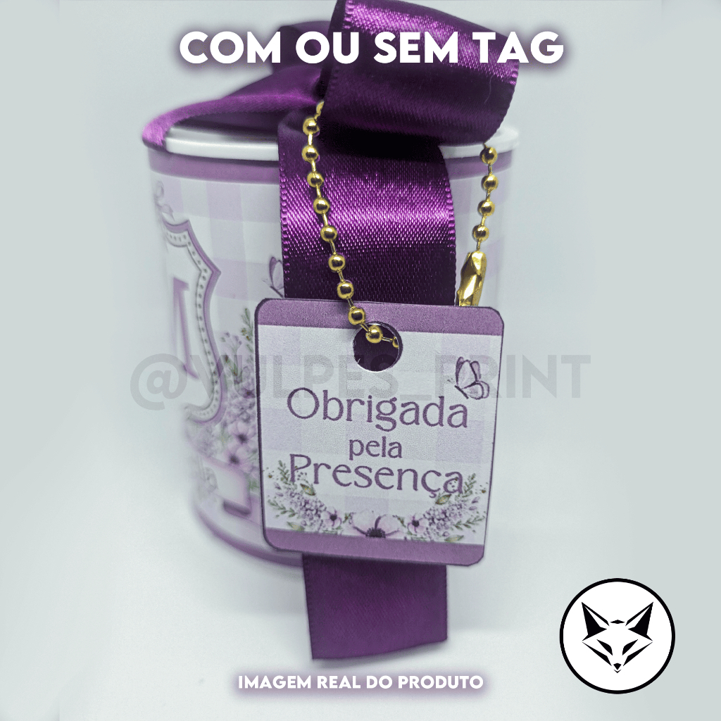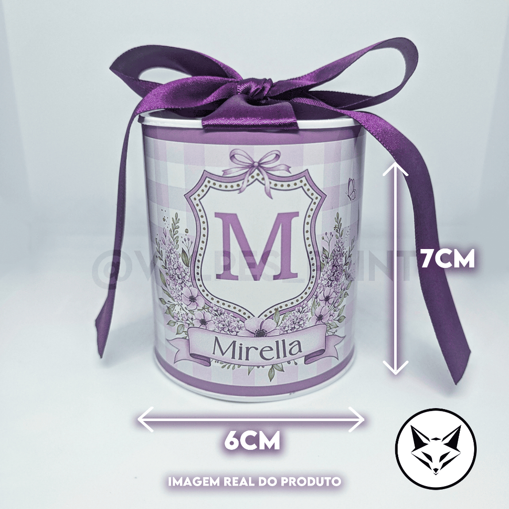 Tubolata Personalizada Escudo Flores Lavanda 7x6 Letra e Nome Lembrancinha Batizado com ou sem Tag