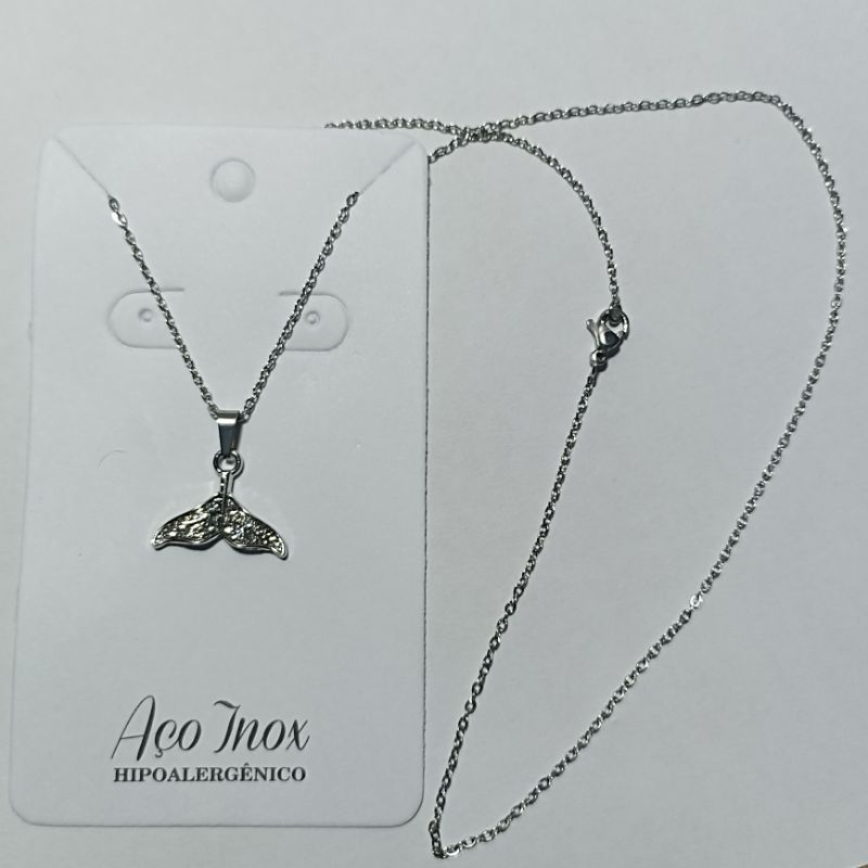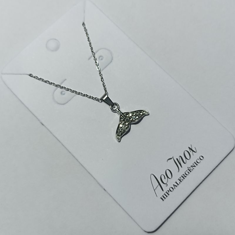 Colar com pingente Calda de Sereia em Aço/cravejado