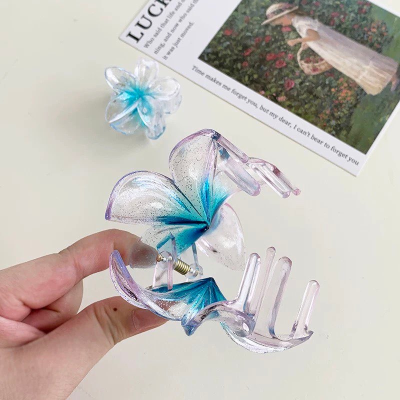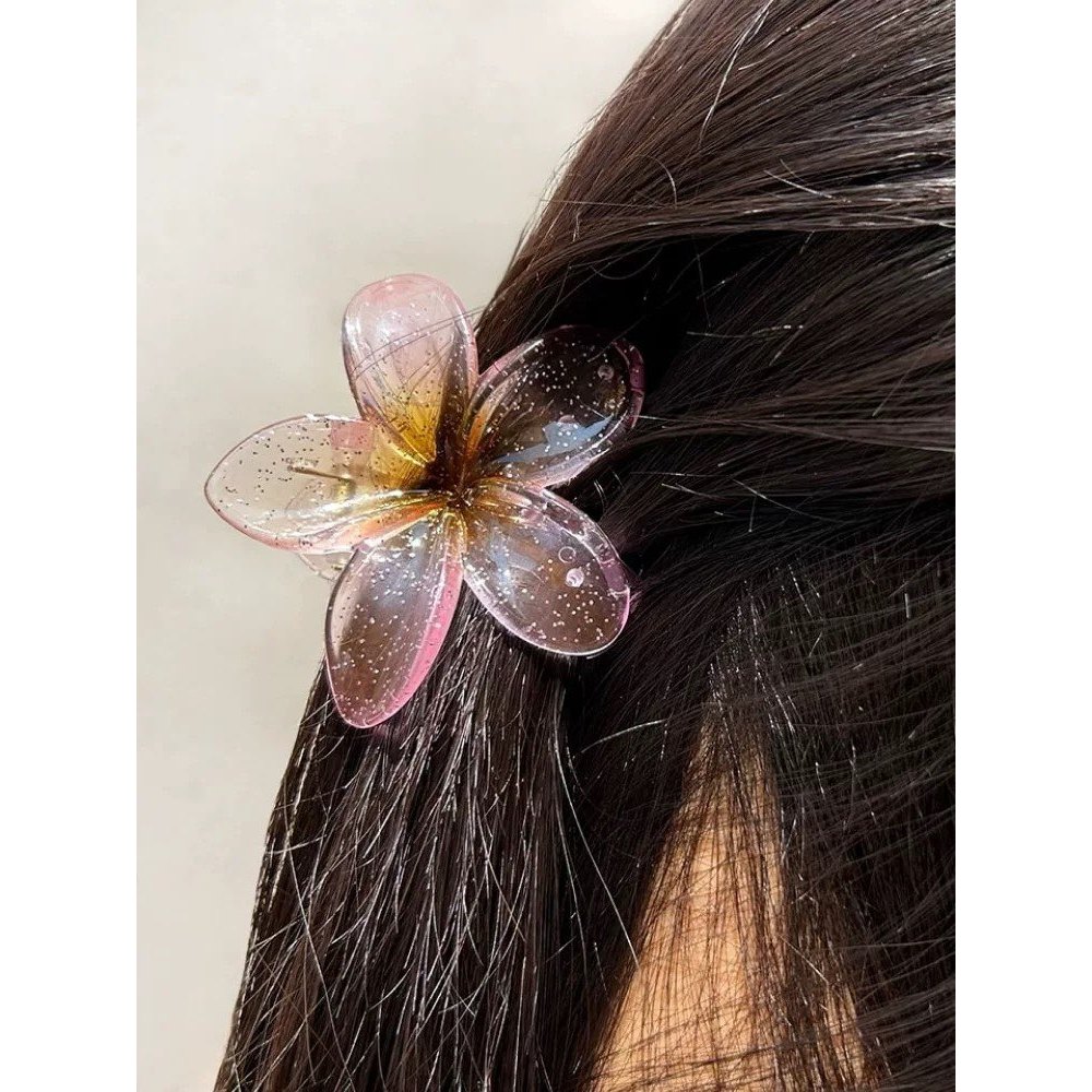 8CM Presilha de Cabelo em Forma de Flor com Ovo Gradiente AB Transparente