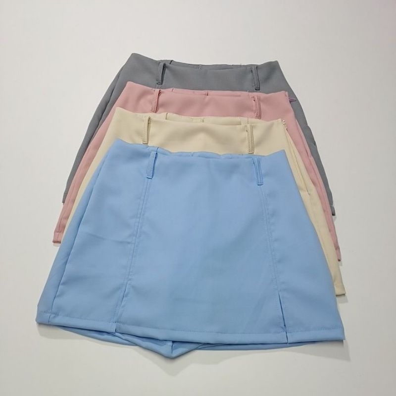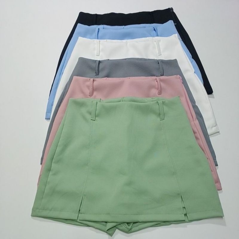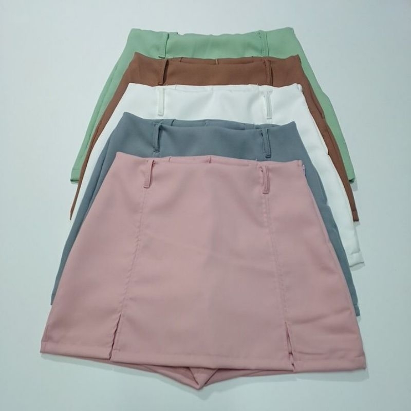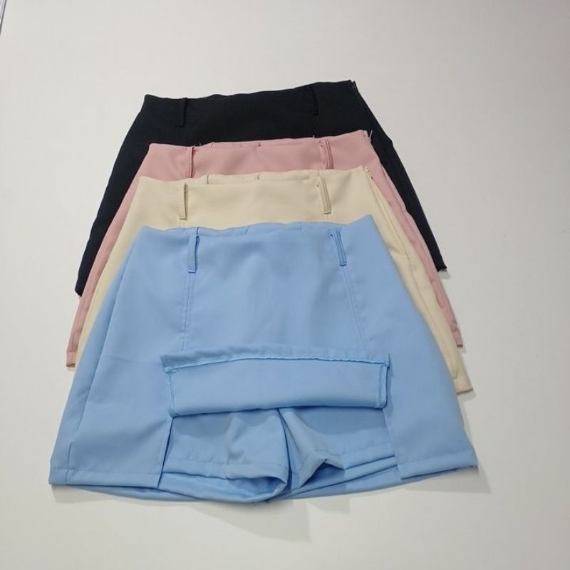 Short Saia Alfaiataria cintura alta com zíper lateral tendência