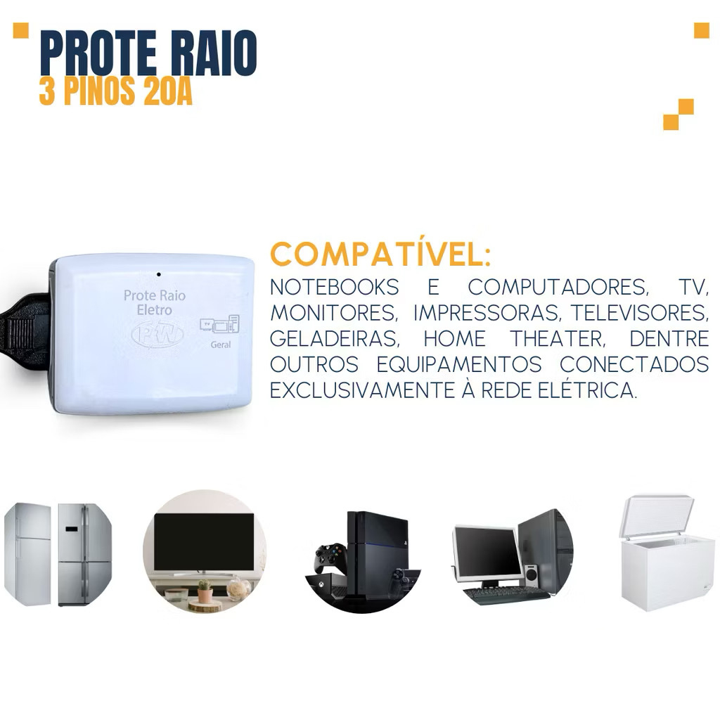 ProteRaio 20 Amperes Anti Raio surtos e picos de energia Bivolt para eletrodomésticos Envio Imediato