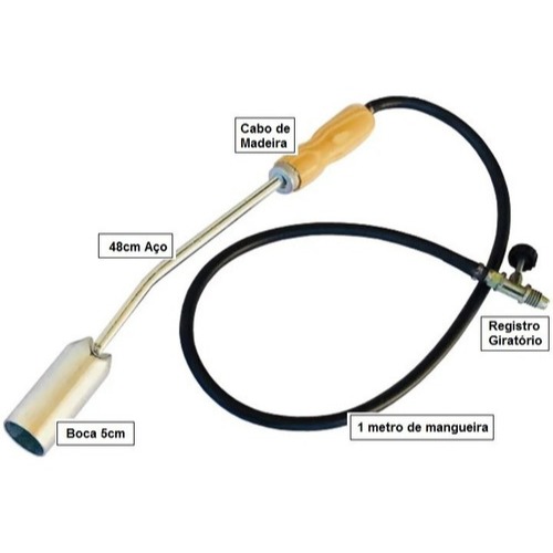 Maçarico Lança Chamas Gás Botijão 13kg Curto com 2 Registros