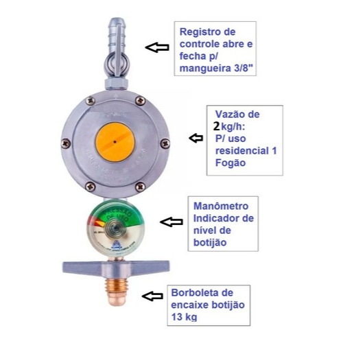 Regulador Medidor De Gás Aliança Manômetro 2Kgh Maior vazão