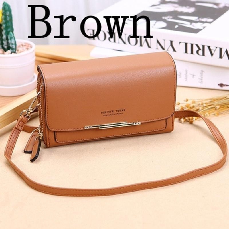 Carteira Feminina Com Zíper De Transversal Ombro Couro PU De 3 Camadas Porta-Cartões Telefone De Corpo Cruzado jz
