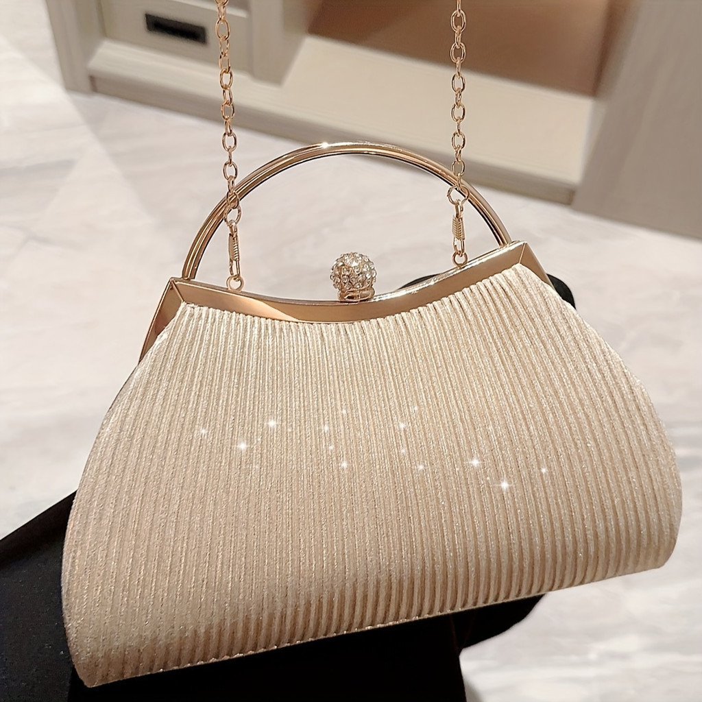 Bolsa Feminina De Festa Franzida Com Alça Corrente Com Strass Para Casamento Baile De Formatura E Jantar