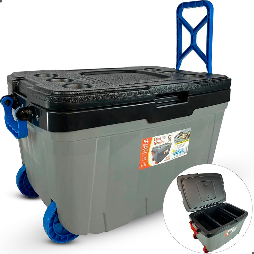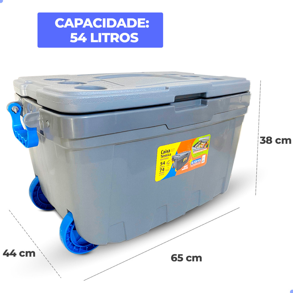 Caixa Térmica Cooler 54 Litros C/ Rodas Praia Pesca Antares