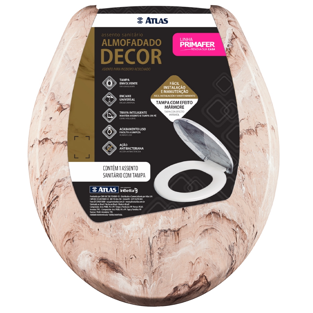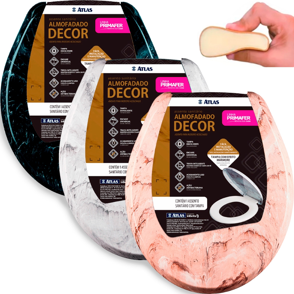 Assento Tampa Sanitário Almofadado Decor Atlas Universal Várias Cores