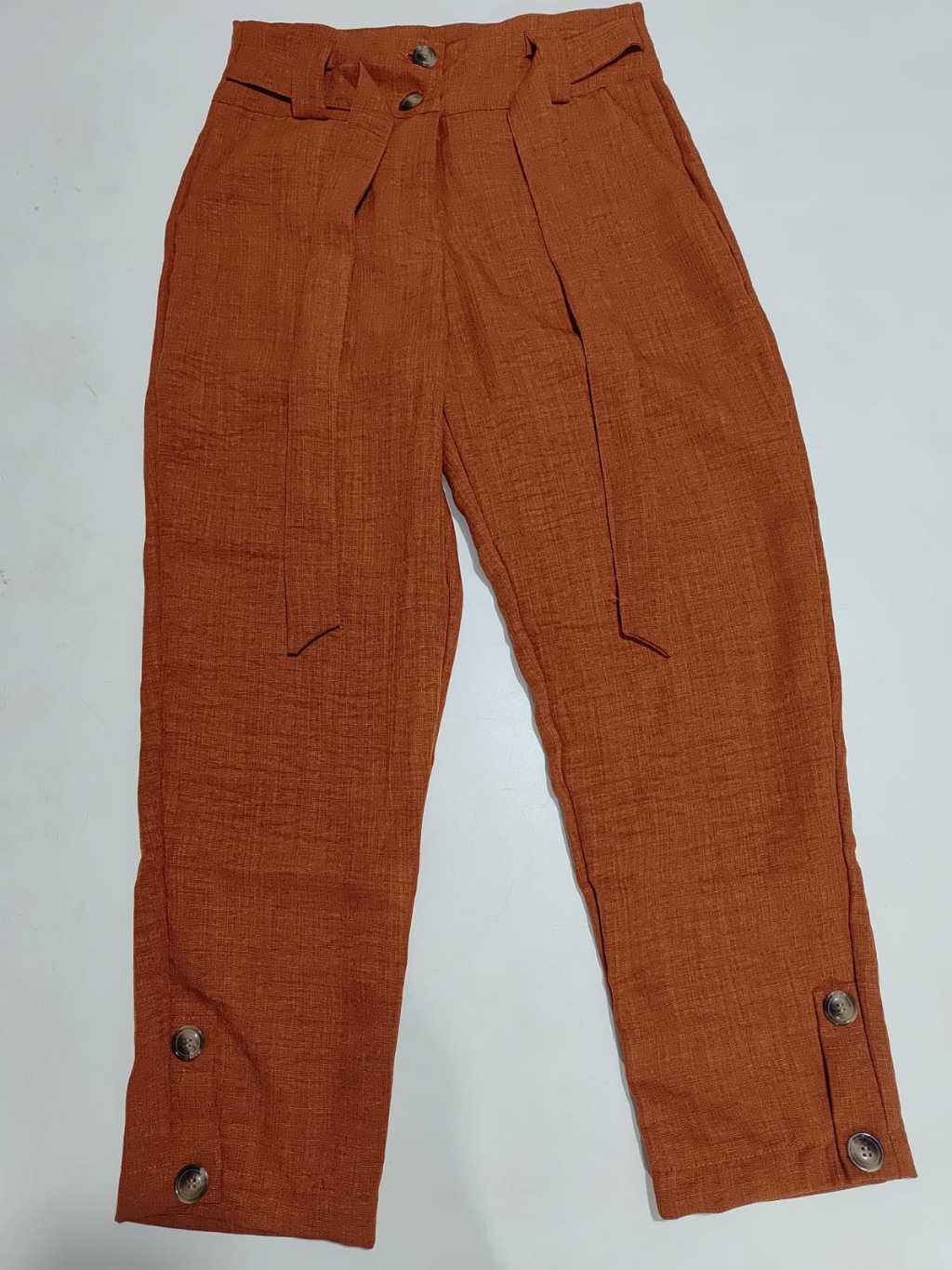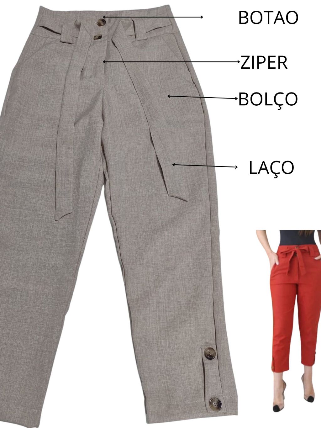 Charme Calça Pantacourt Linho Cintura Alta Feminina Elegante