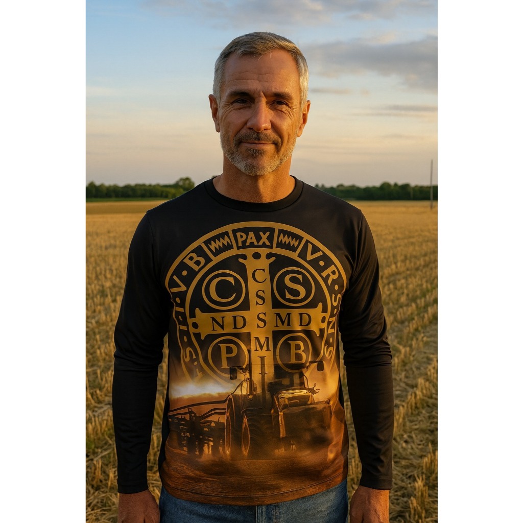 Camiseta Proteção Solar UV Agro Rural Trator Colheita Soja