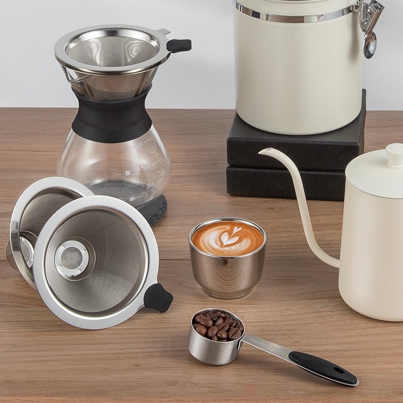 Coador de Café Aço Inox P/M/G Reutilizável Filtro Permanente Sem Papel (Camada Dupla)