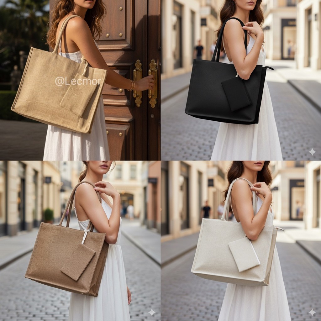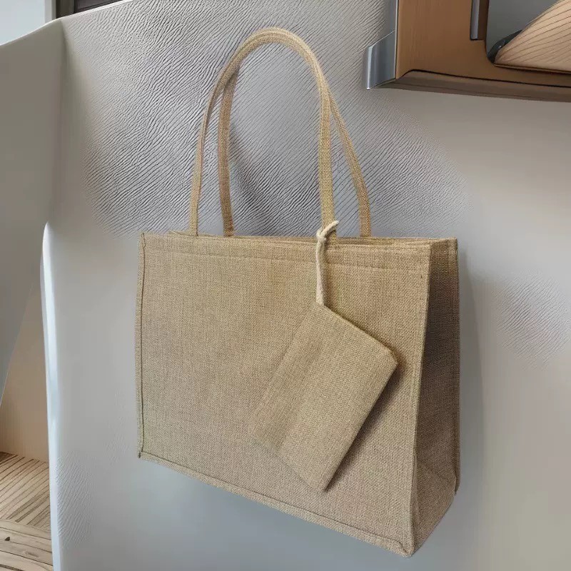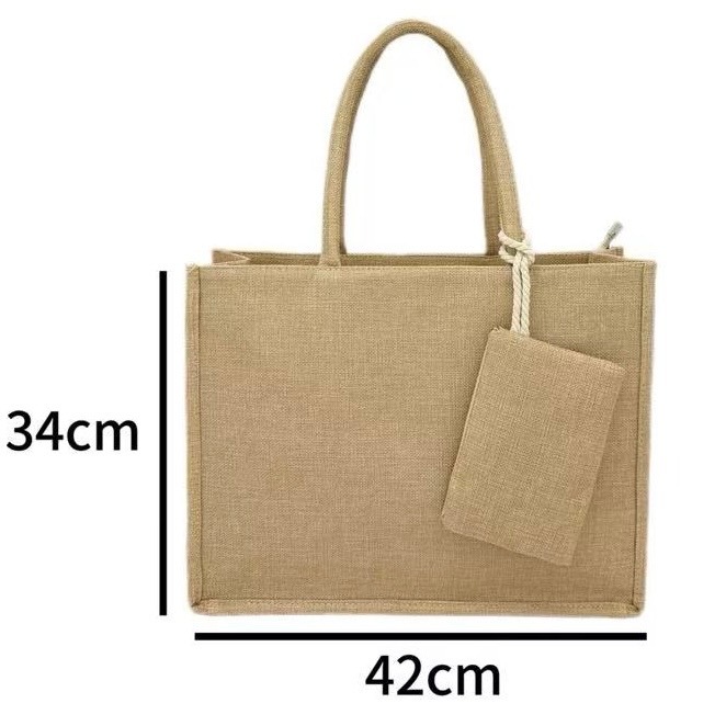 Kit Bolsa Sacola Grande Ecológica de Juta com Necessaire Removível Para Compras e Praia