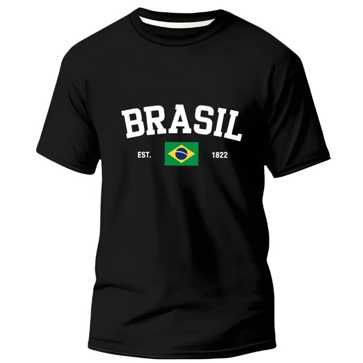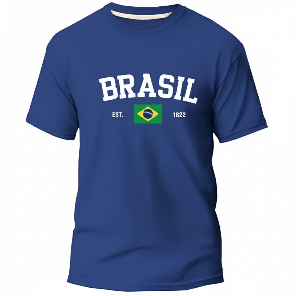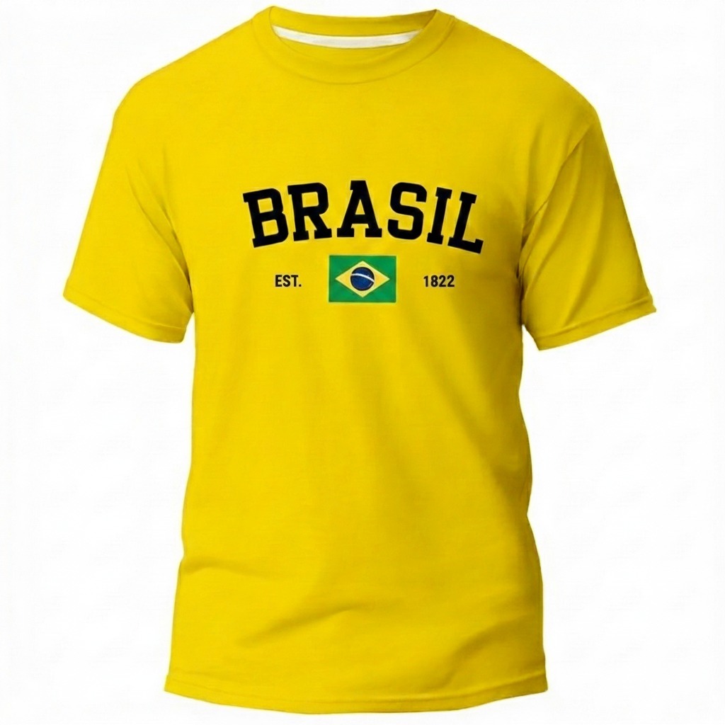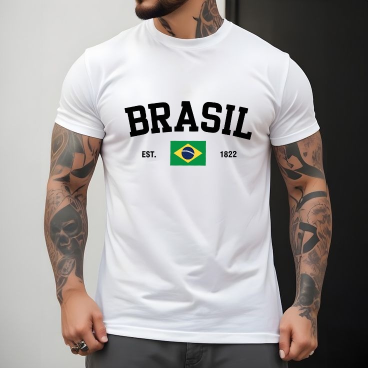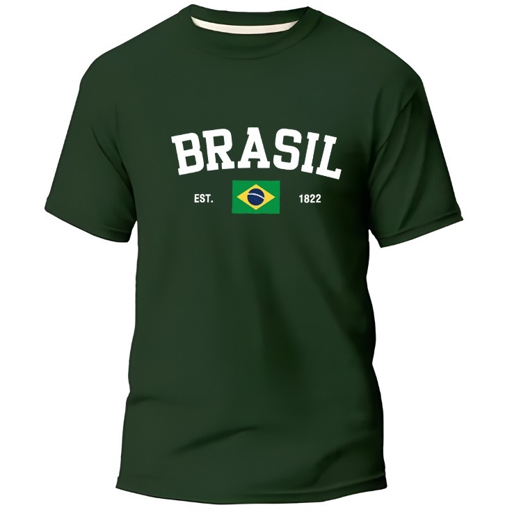 Camisa Masculino Basica Brasil Estampada Camiseta Gola Redonda 100% Algodão