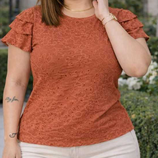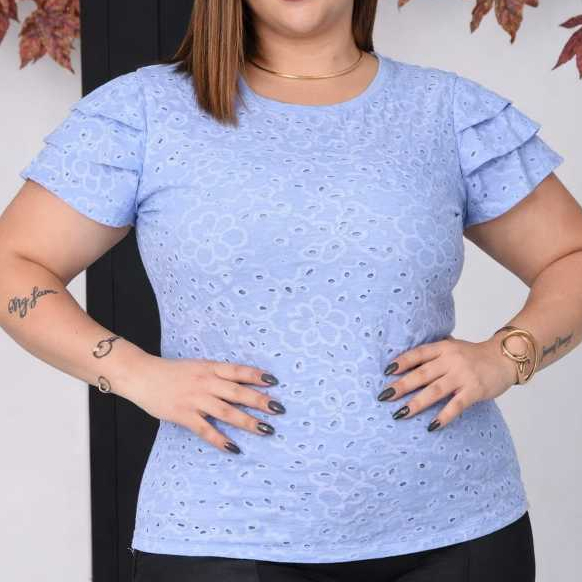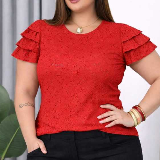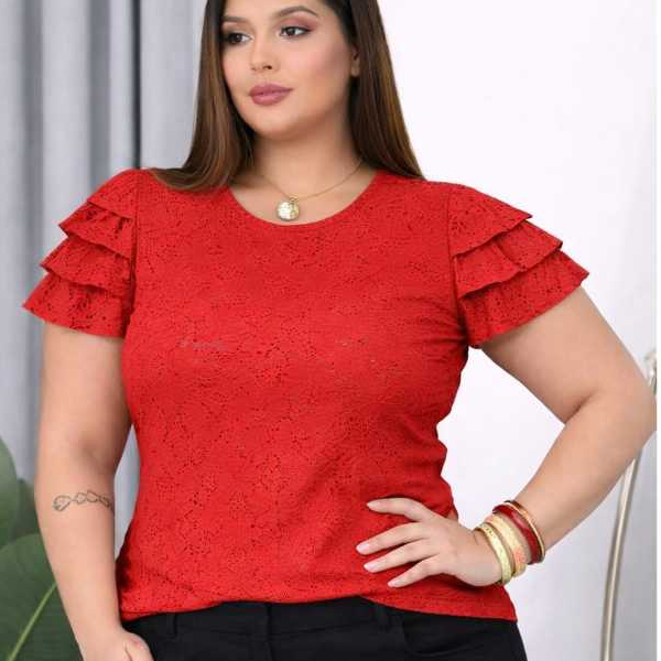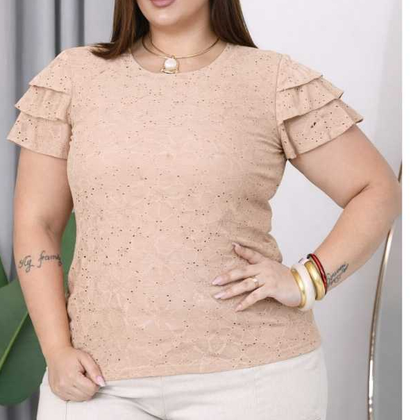 blusa femenina de malha lasie com mangas babadas