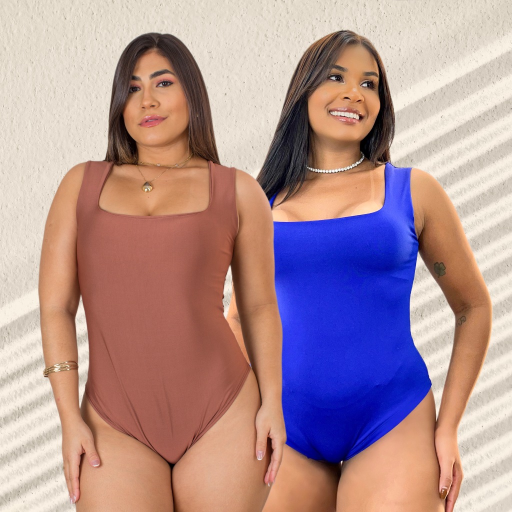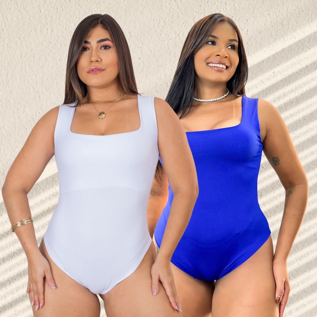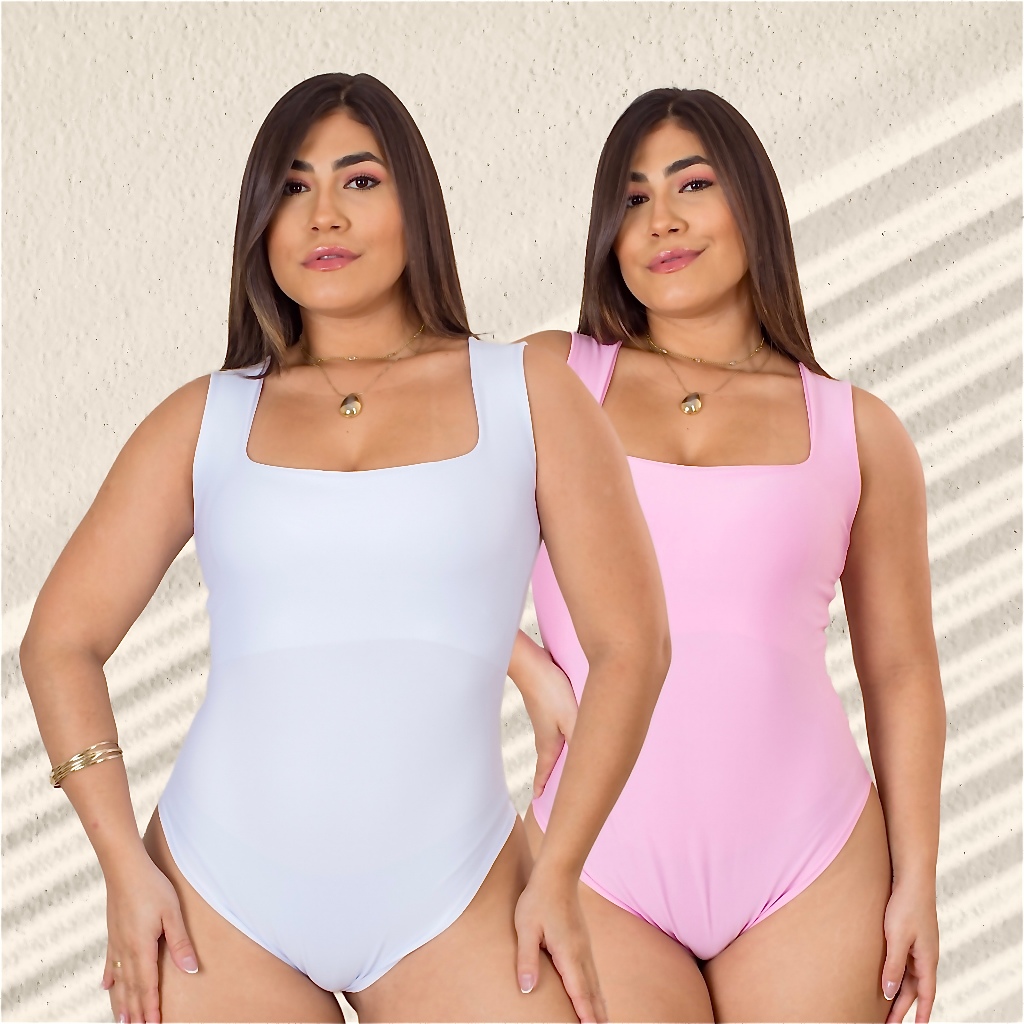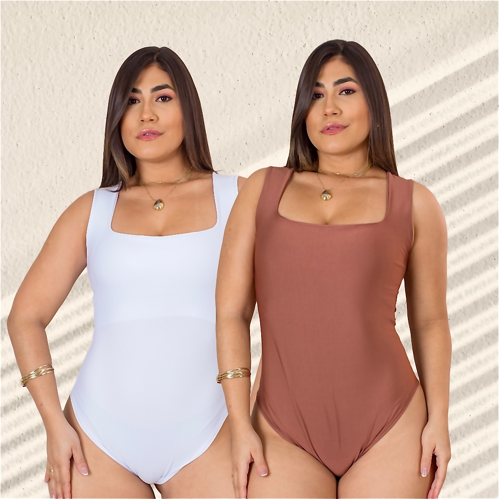 Kit 2 Body Feminino Decote Quadrado com Alça Larga em Suplex Modelador Basico