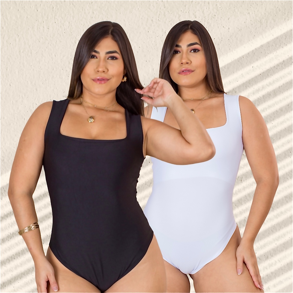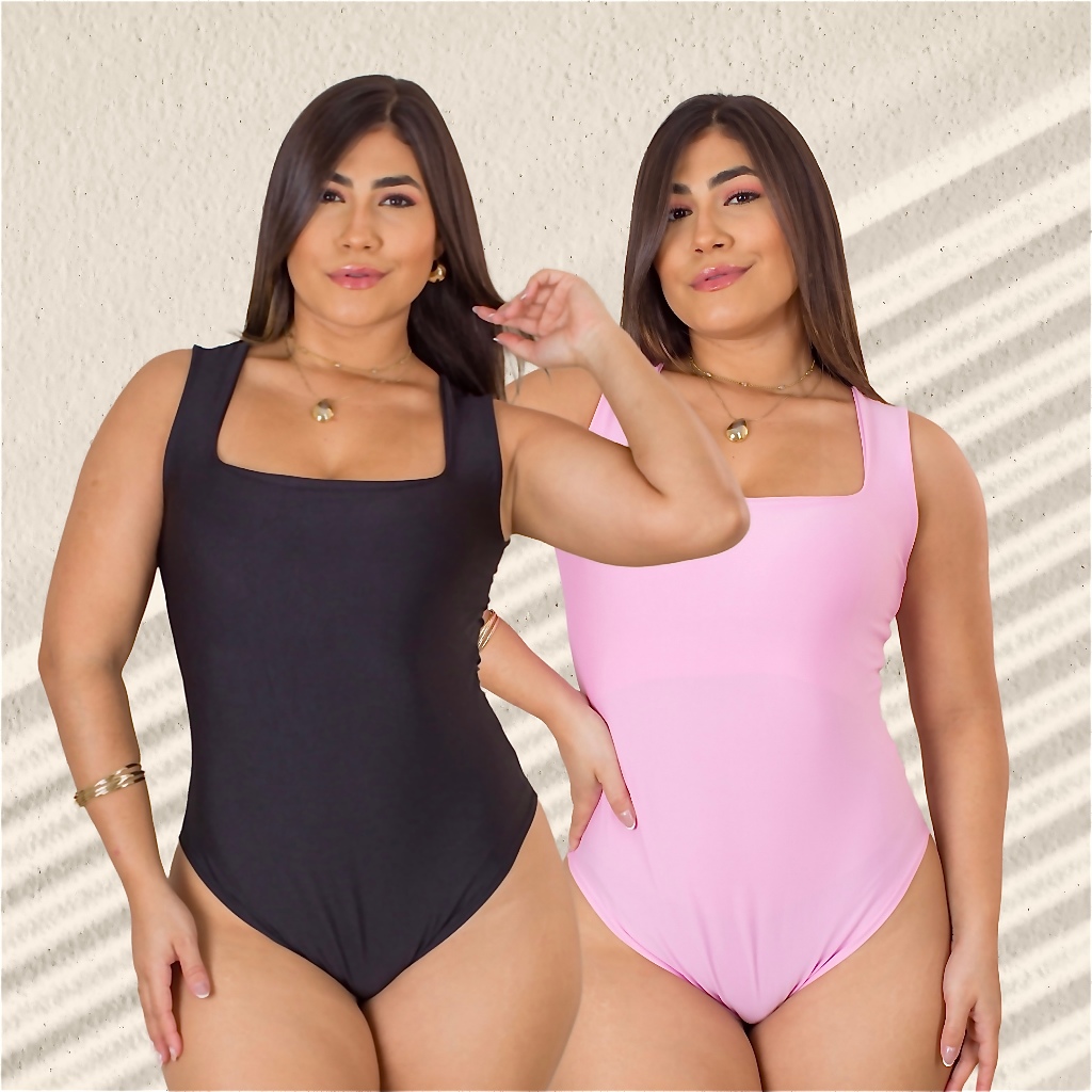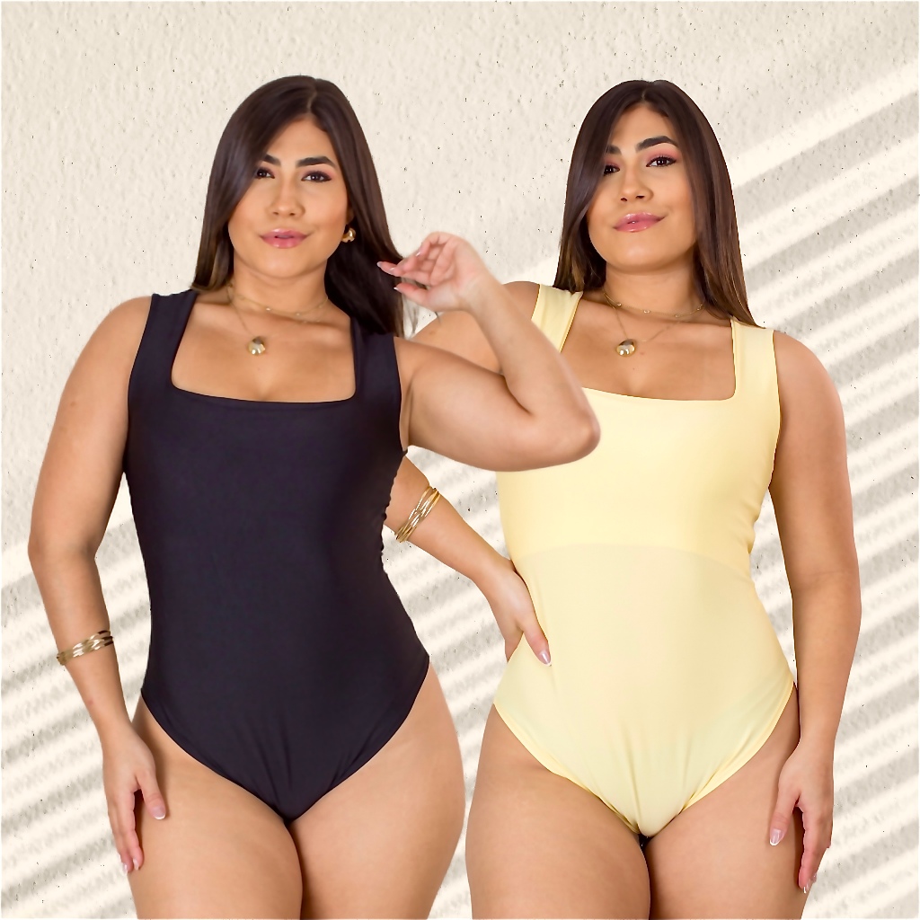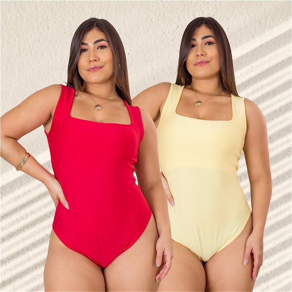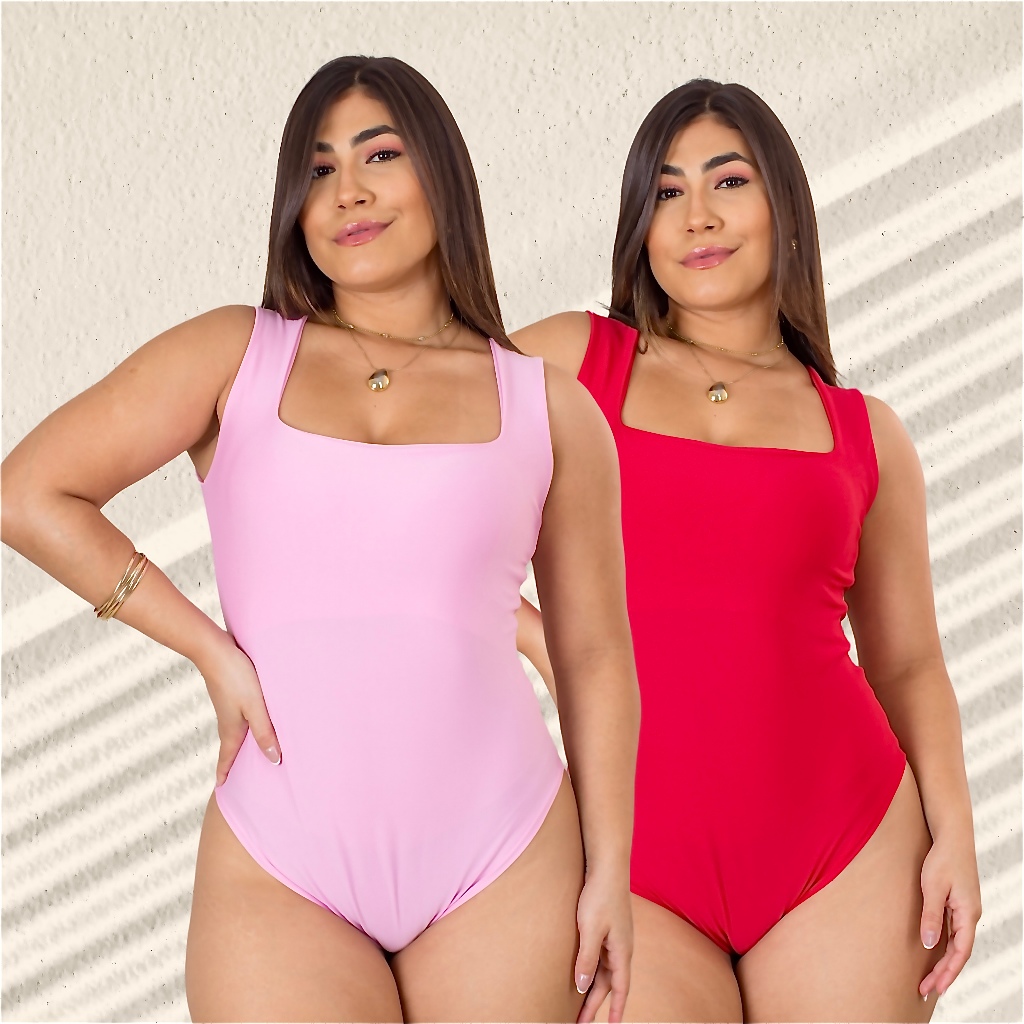 Kit 2 Body Feminino Decote Quadrado com Alça Larga em Suplex Modelador Basico