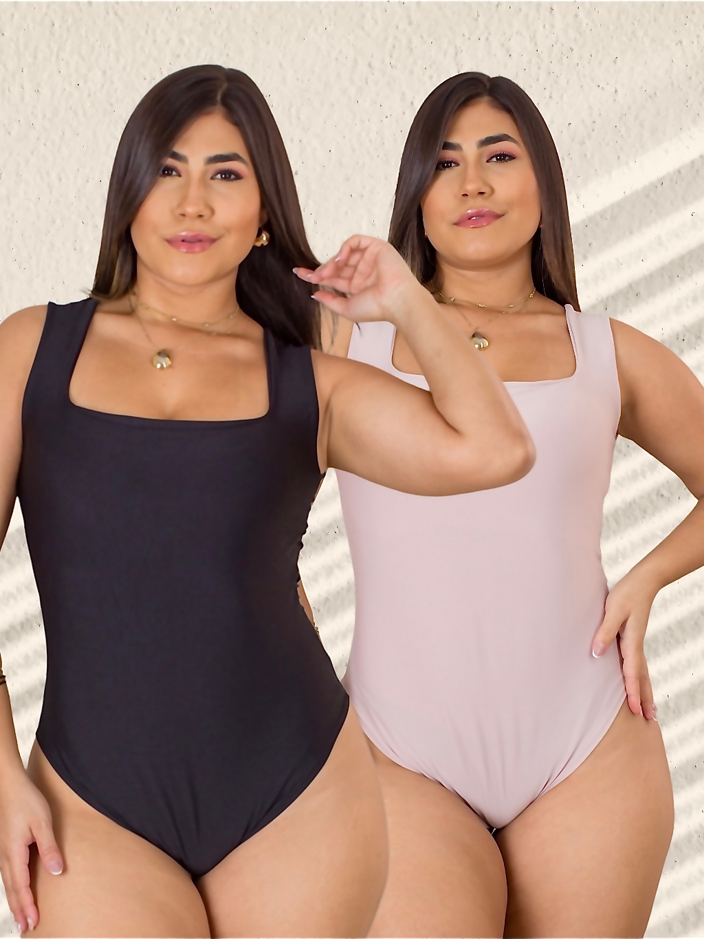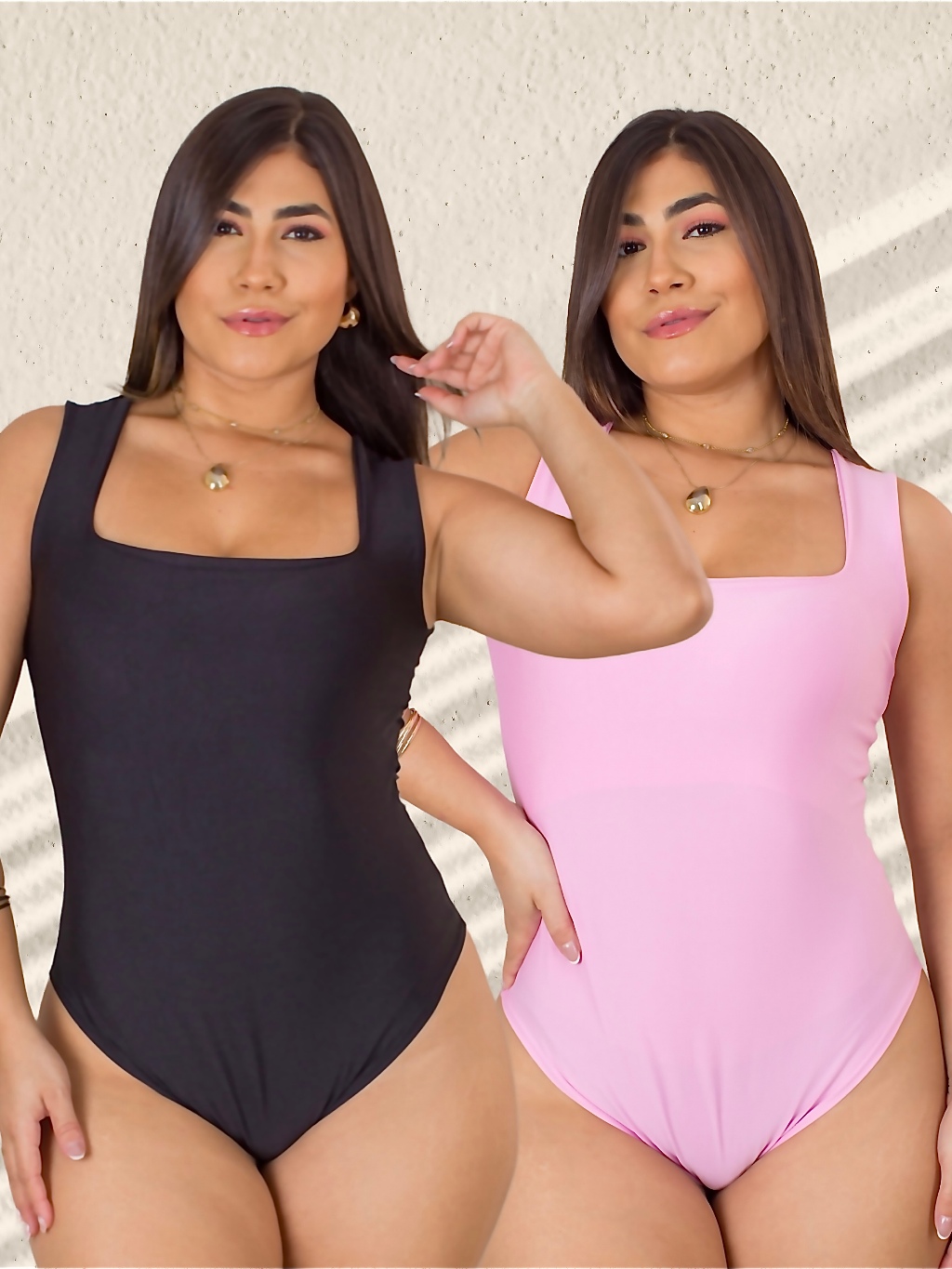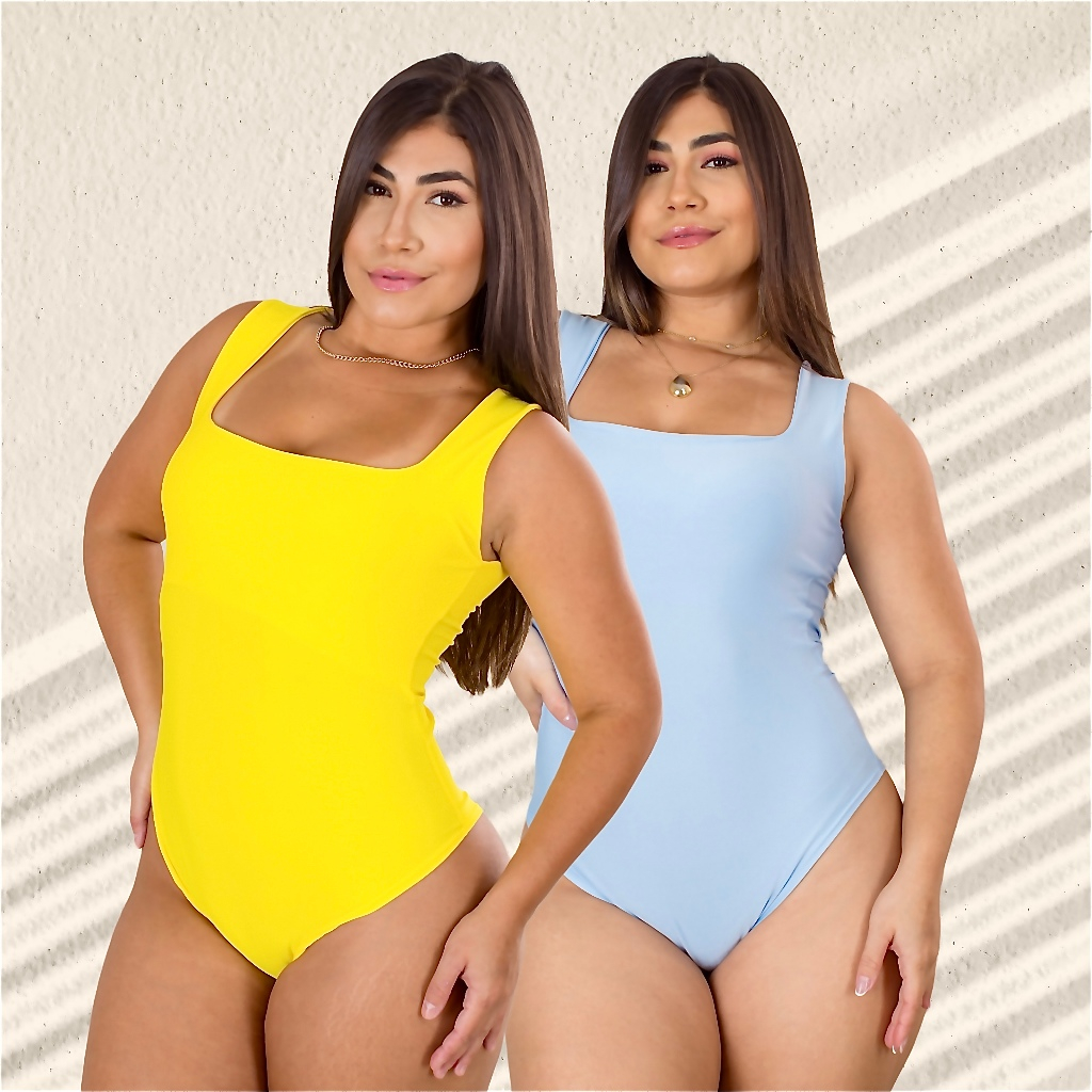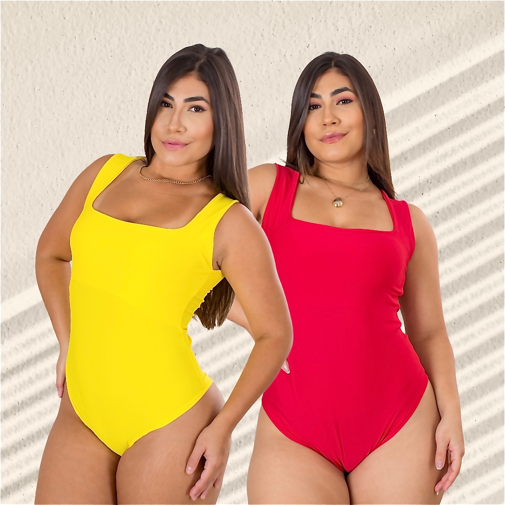 Kit 2 Body Feminino Decote Quadrado com Alça Larga em Suplex Modelador Basico