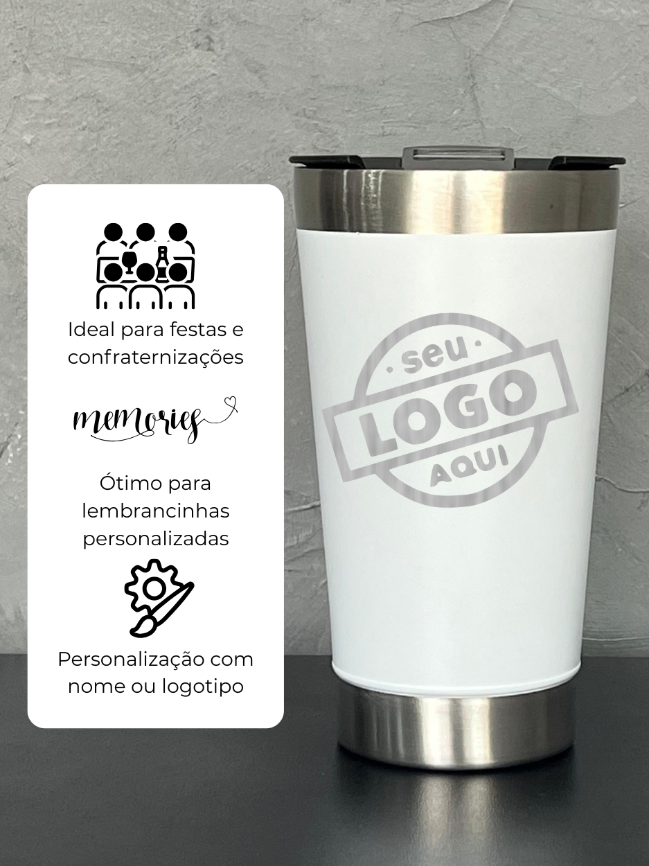 Copo Térmico Personalizado 473ml – Brinde com Tampa e Abridor | Nome Time Logo Evento