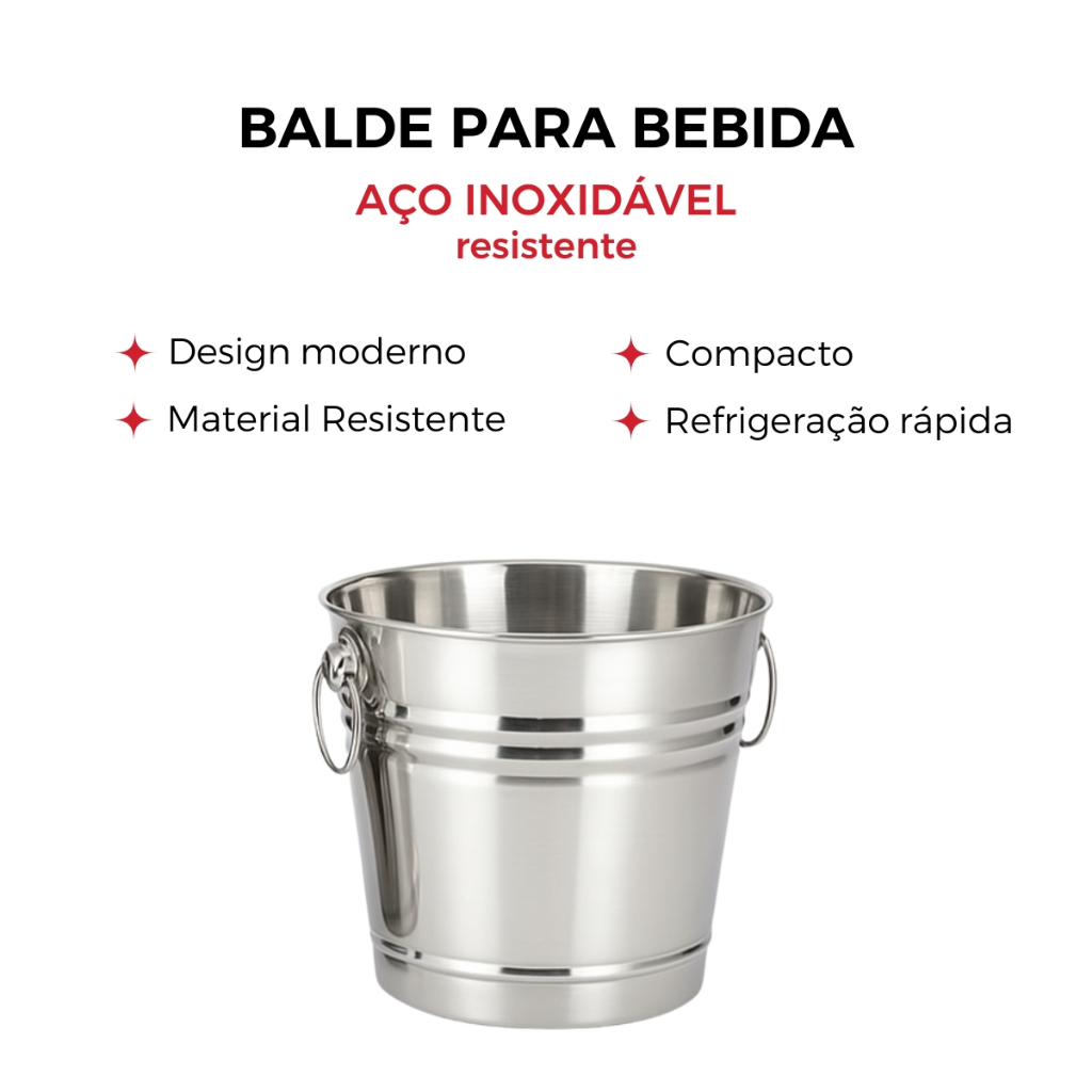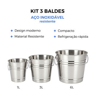 Kit 3 Baldes de Gelo Aço Inoxidável Refrigeração Rápida Cerveja Champanhe Vinho 1L, 3L e 6L