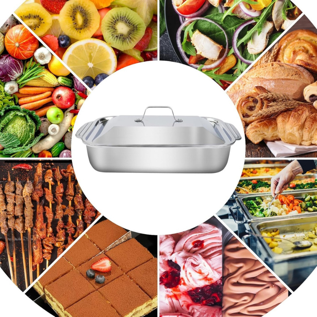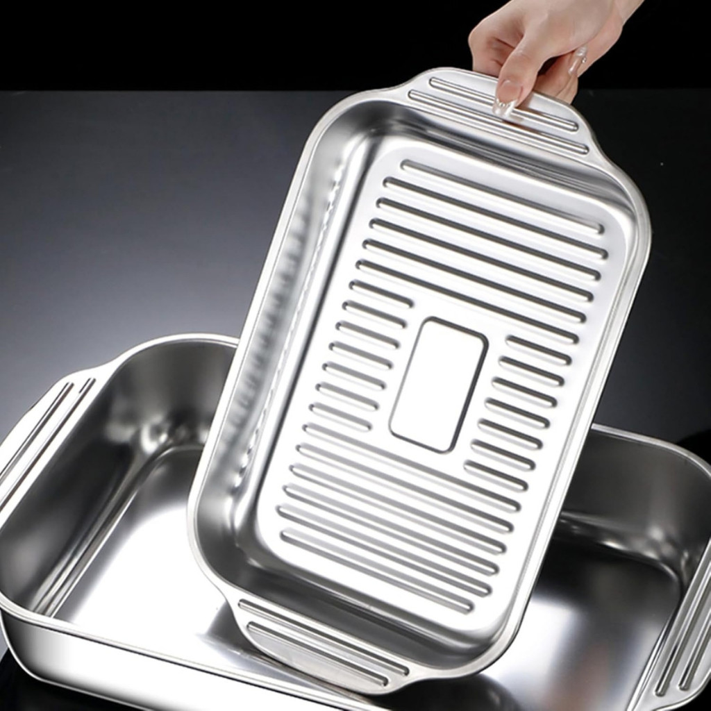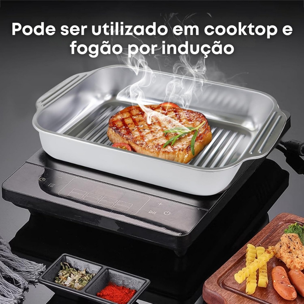 Assadeira De Aço Inoxidável Com Tampas, Antiderrapante, Resistente A Altas Temperaturas
