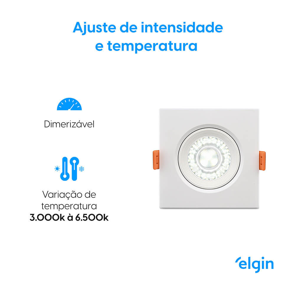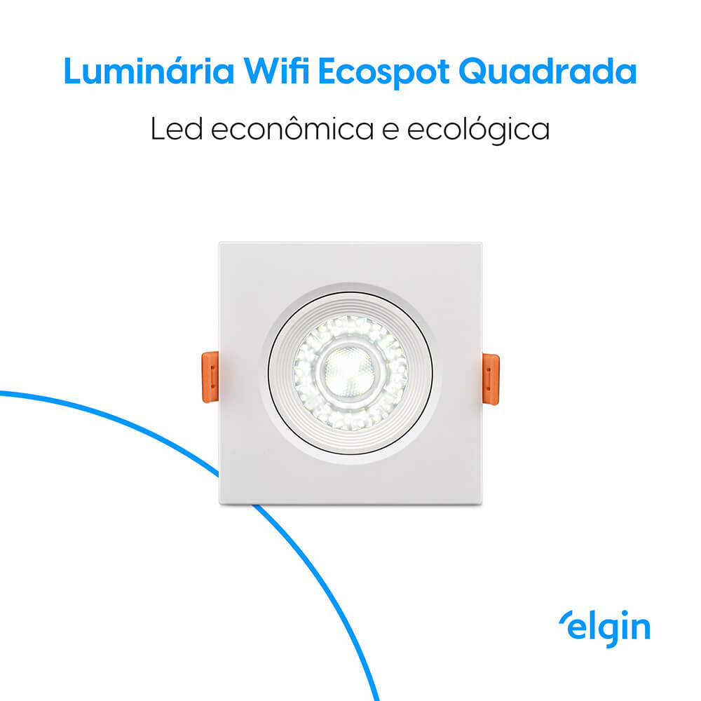 Luminária LED Ecospot Inteligente 5W 3000-6500K Elgin Quadrada WIFI RGB Bivolt Compatível com Alexa e Google Home