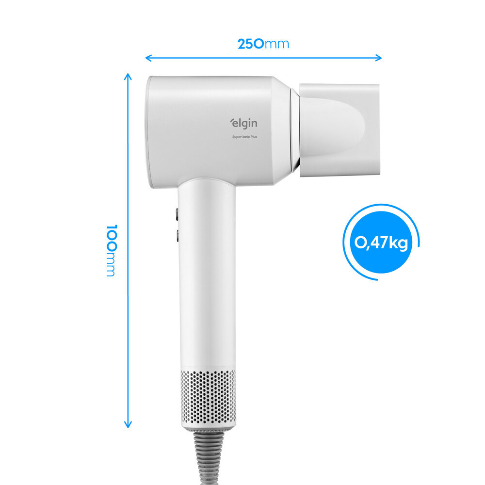Secador de Cabelo Super Ionic 1.700W 110V Branco Motor BLDC 3 Temperaturas Jato Frio com Difusor