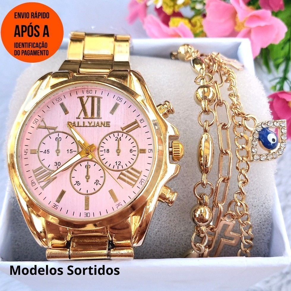 ⚡PROMOÇÃO⚡ Relogios Feminino Banhado + Pulseira Kit Relógio Feminino Dourado Super Lindo Promoção ***