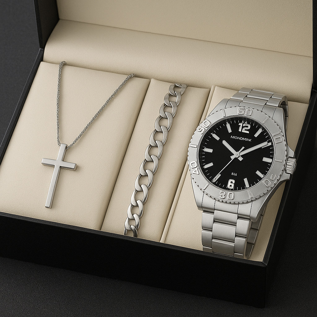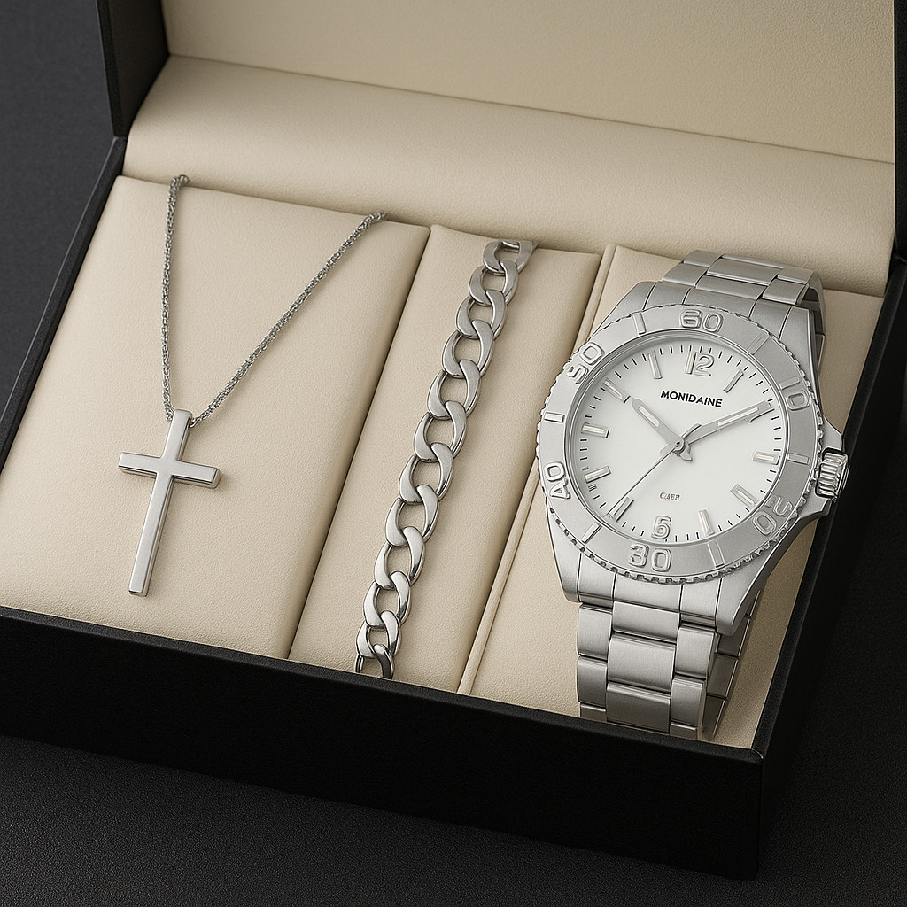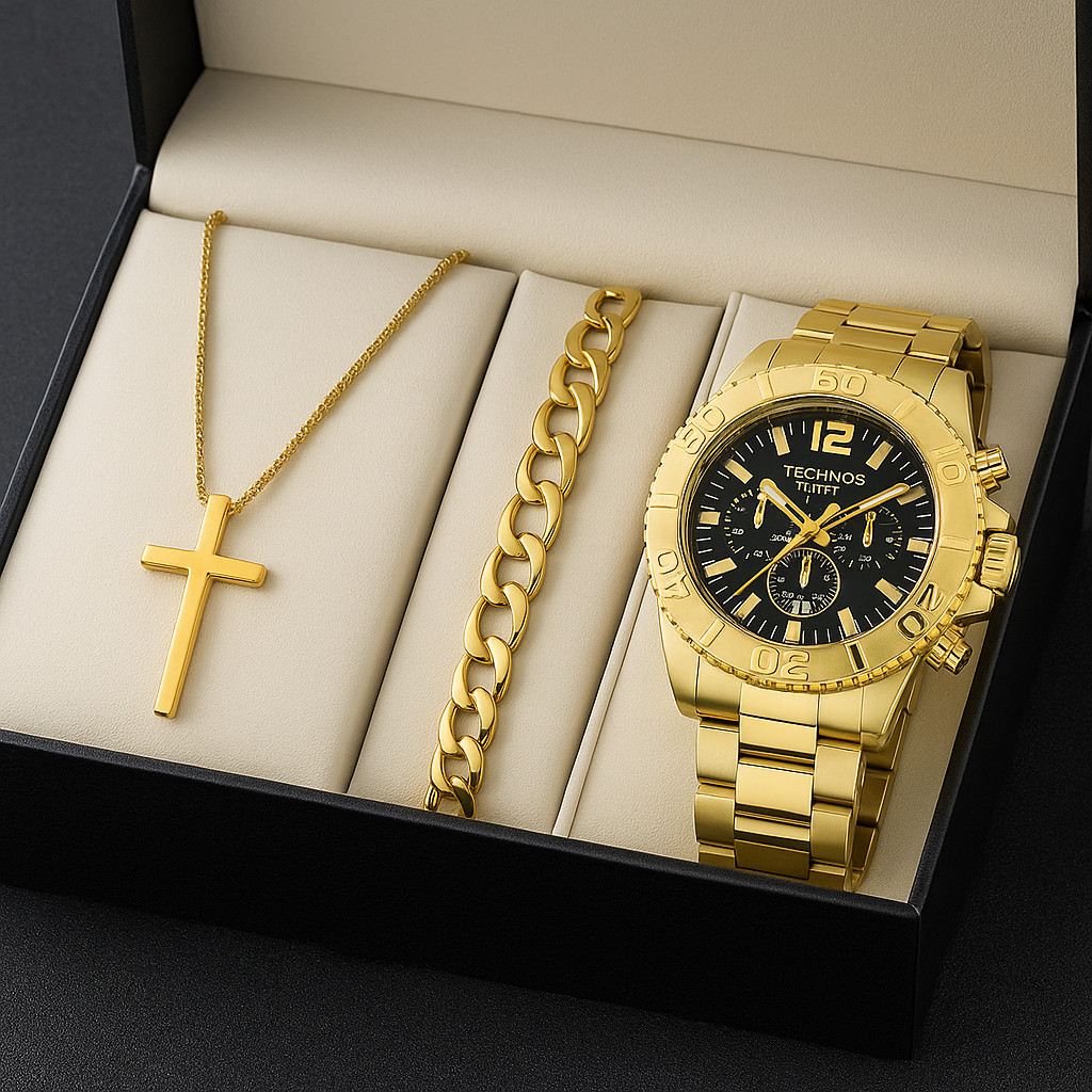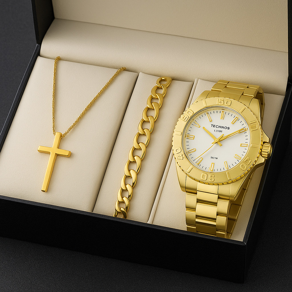Kit Relógio Masculino Original (Ou Somente Relogio) + Corrente Cruz Banhado+ Pulseira