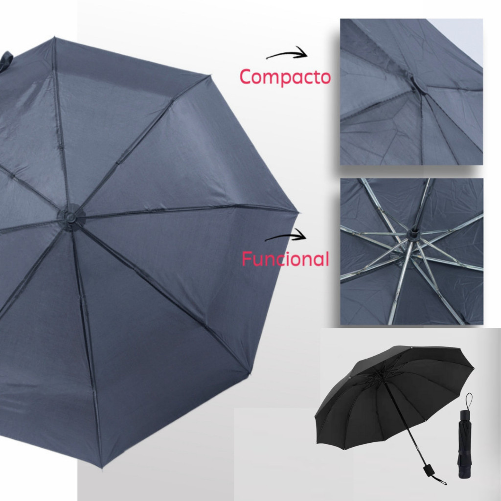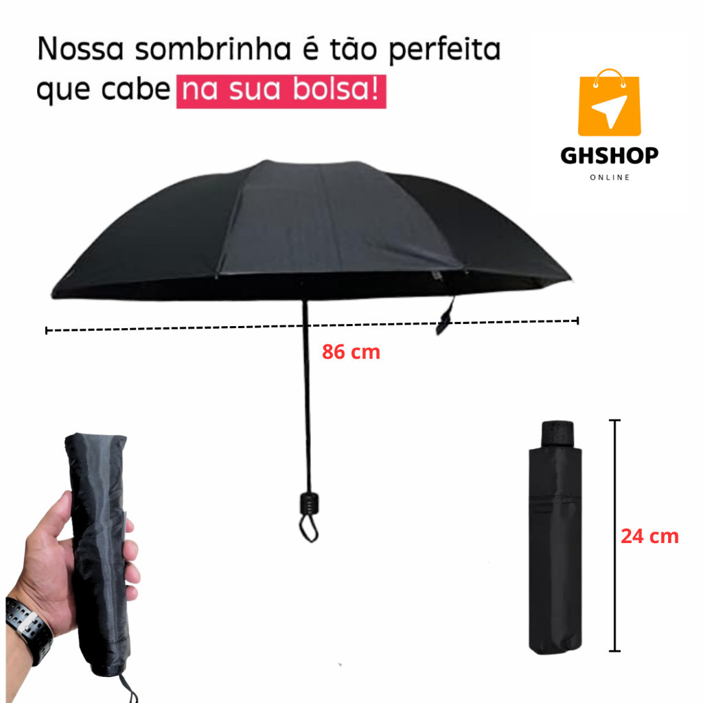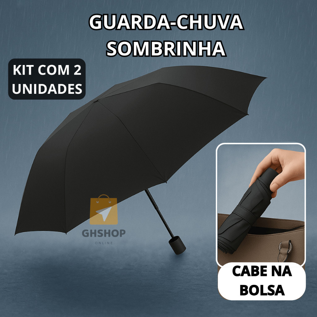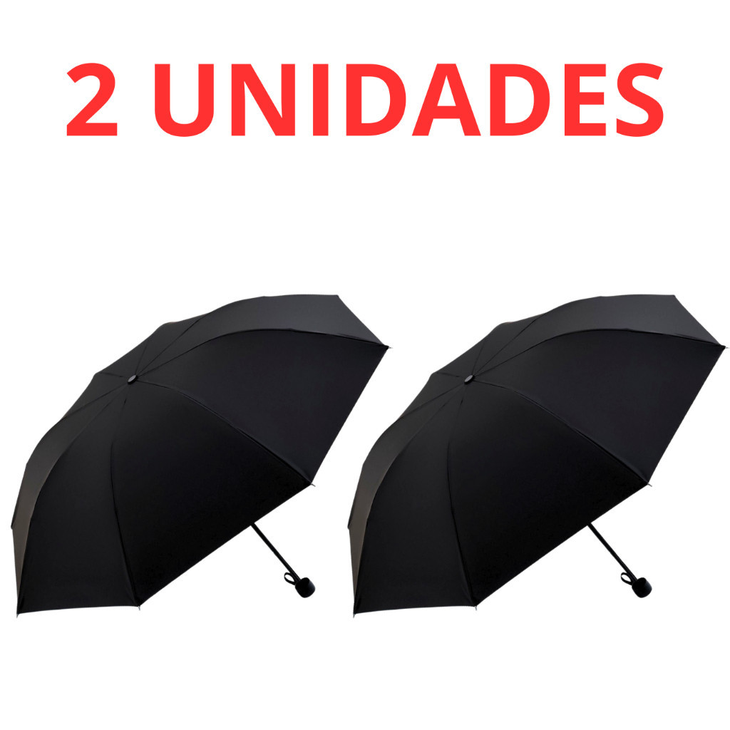 Kit 2 Guarda Chuva Pequeno Sombrinha de Bolsa Preto Portátil