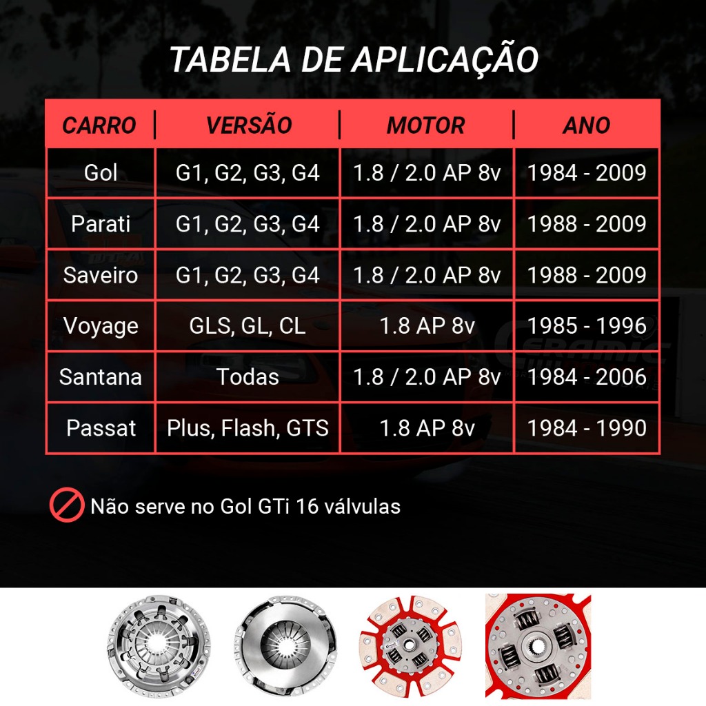 Embreagem Cerâmica Platô 980lb Pedal Light 6 pastilhas com molas AP 1.6 1.8 2.0 Ceramic Power