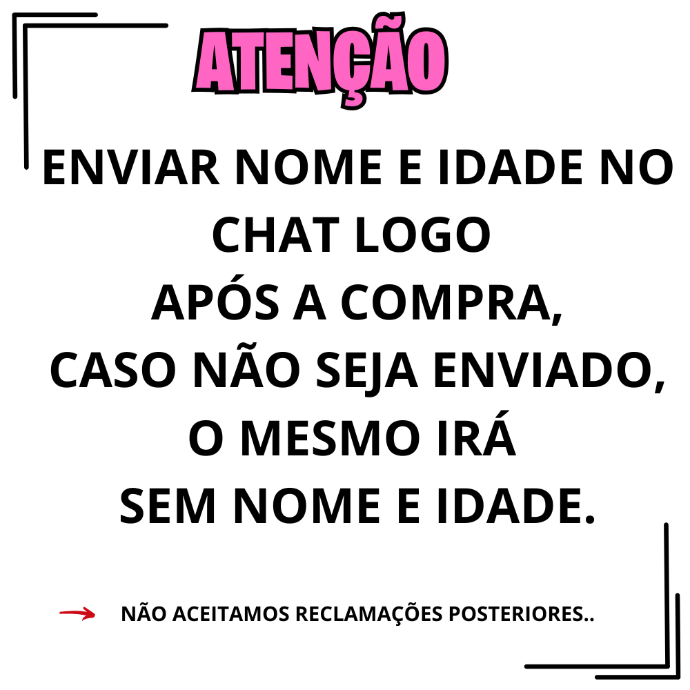 Sob encomenda: envio após 5 dias da compra