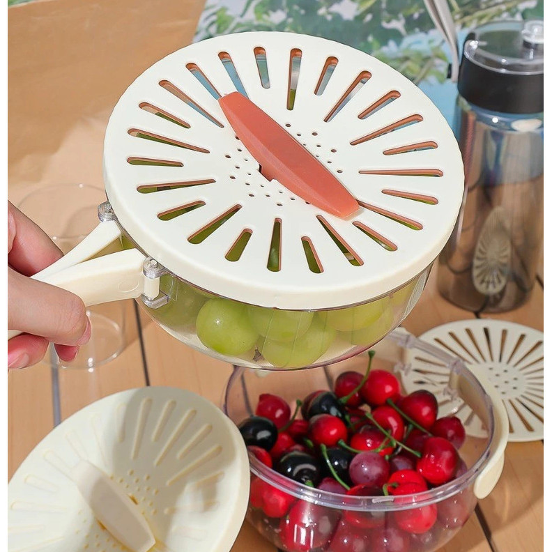 Cesto De Drenagem Com Cabo Dobrável Tampa-Bacia De Legumes De Grande Capacidade Lavagem De Frutas