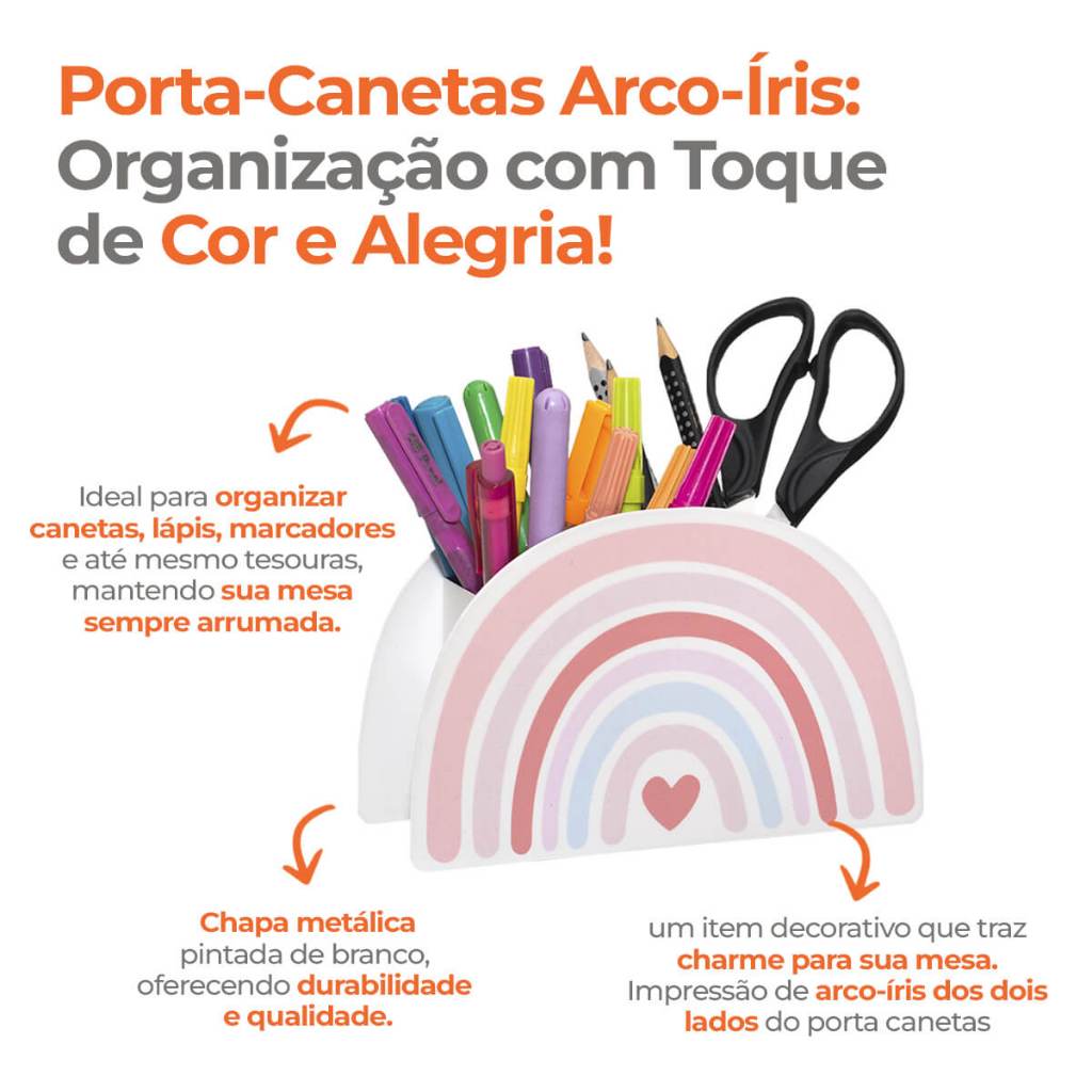Porta Lápis Canetas E Acessórios Arco Íris - Geguton