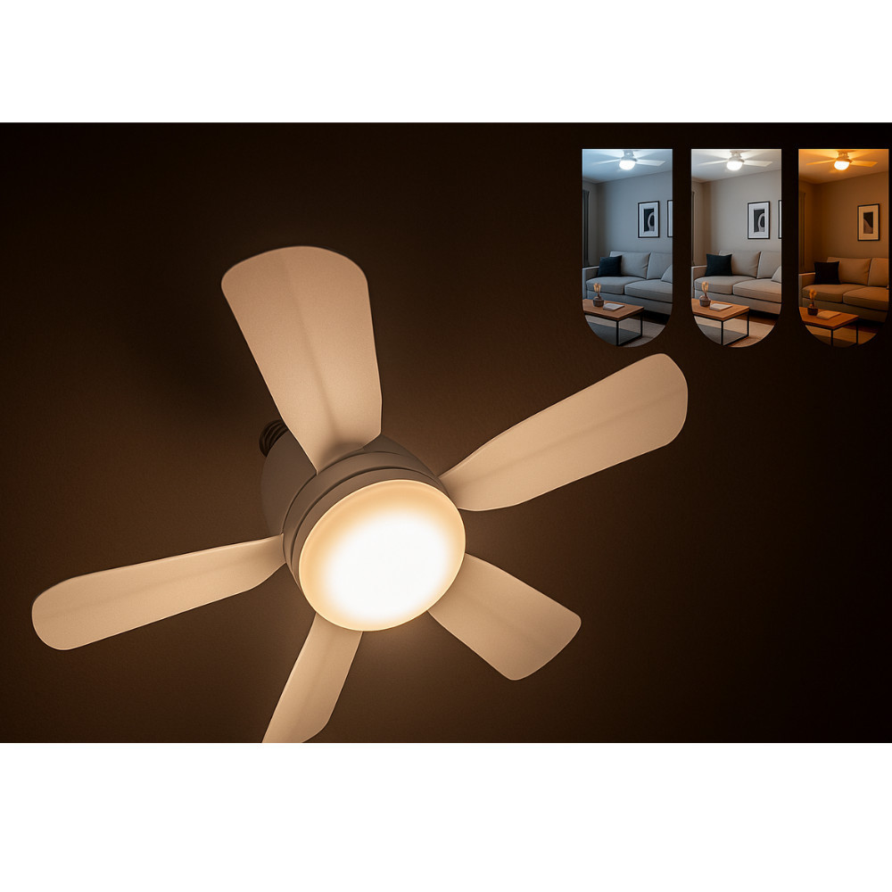 Ventilador de Teto 80w Bivolt 5 helices Oval LED Com bulbo 3 Cores E27 Controle Função Timing