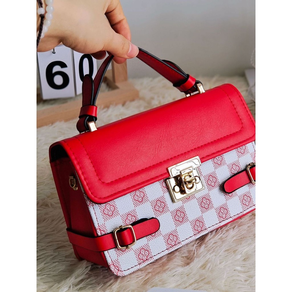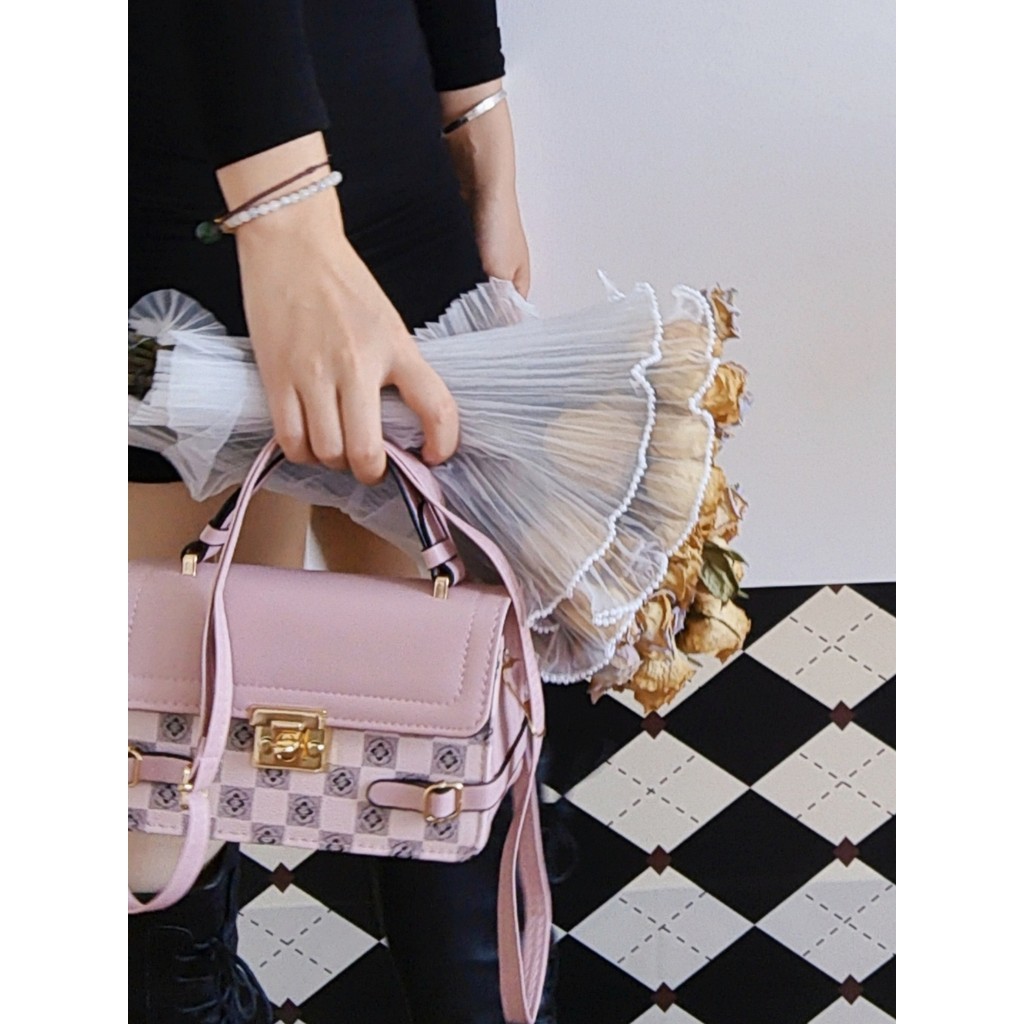 Bolsa feminina retrô preguiçosa pequena xadrez crossbody