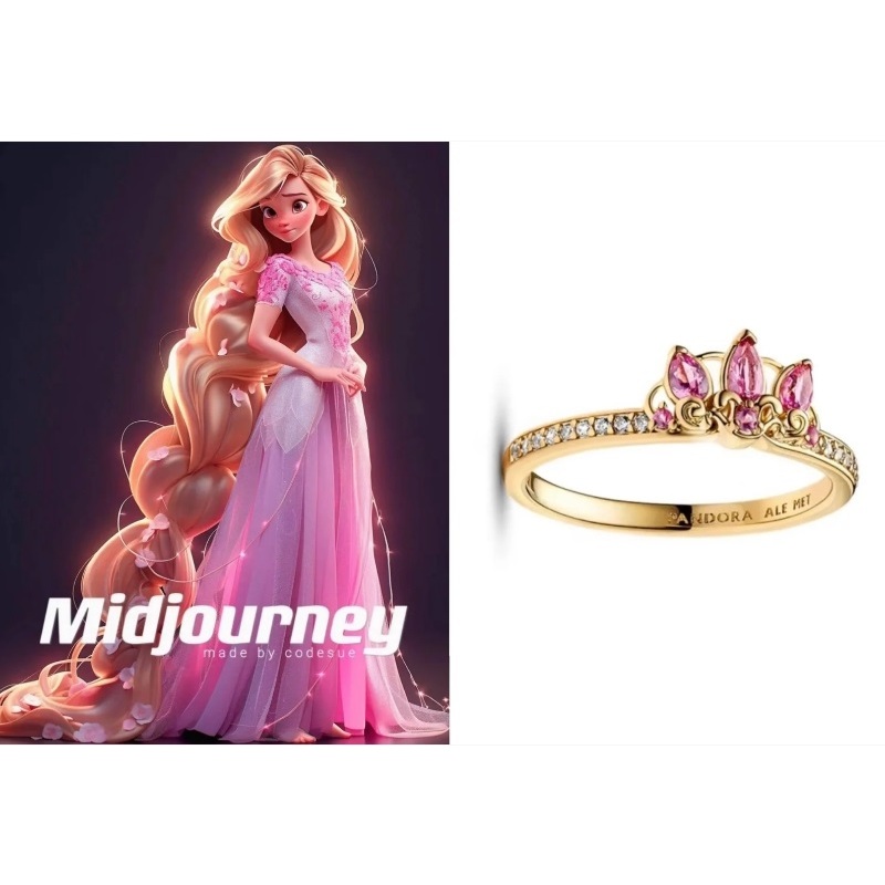 (Novo) Anel De Coroa Rosa Disney Rapunzel Em Prata 925