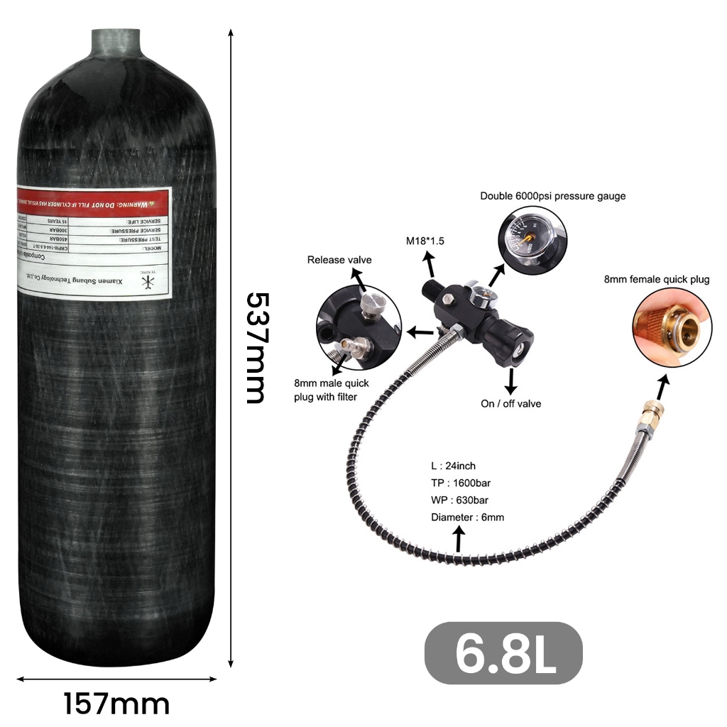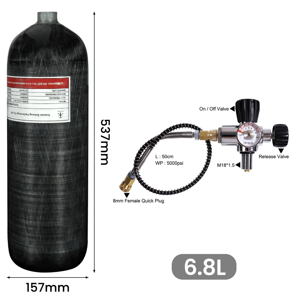 TUXING 300Bar 6.8L Cilindro Fibra Carbono Alta Pressão Tanque Estação Enchimento Válvula Regulador