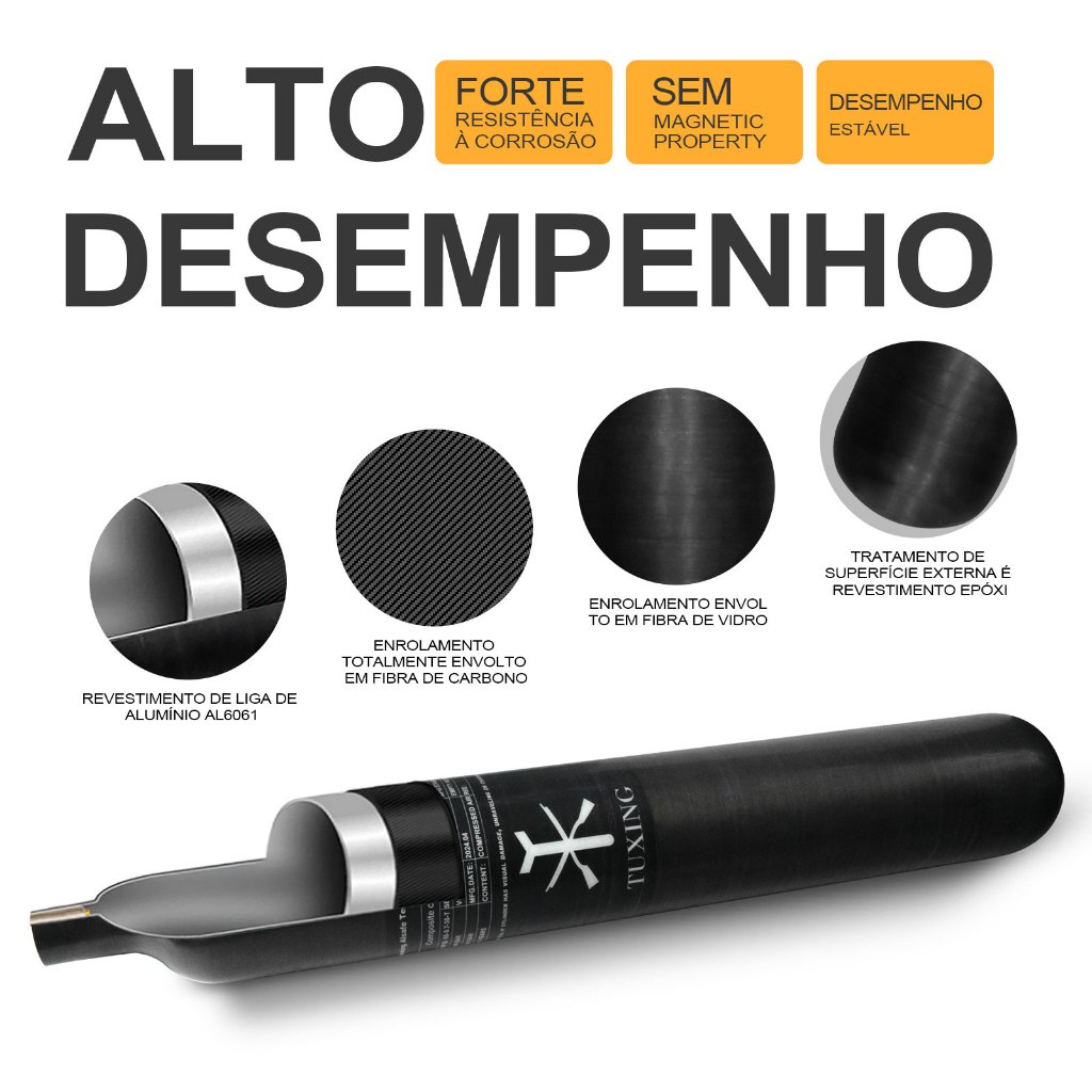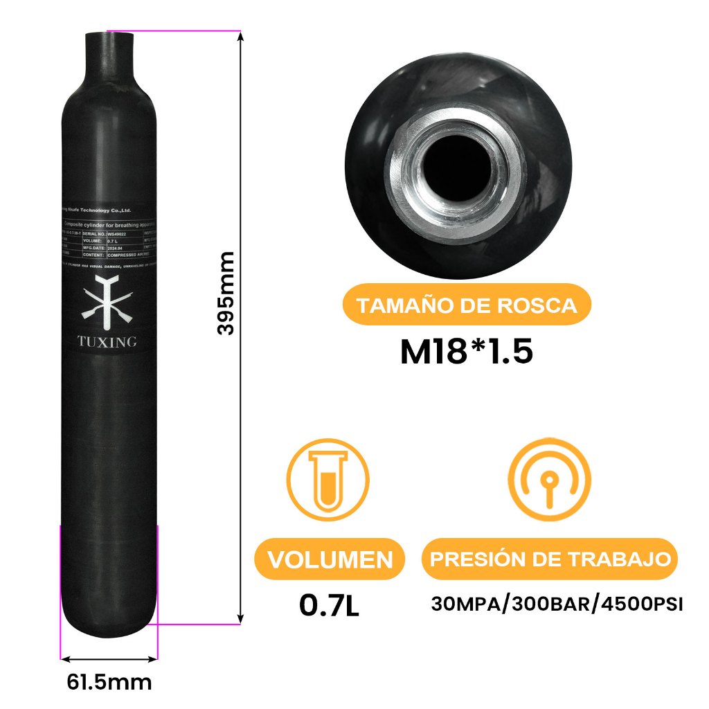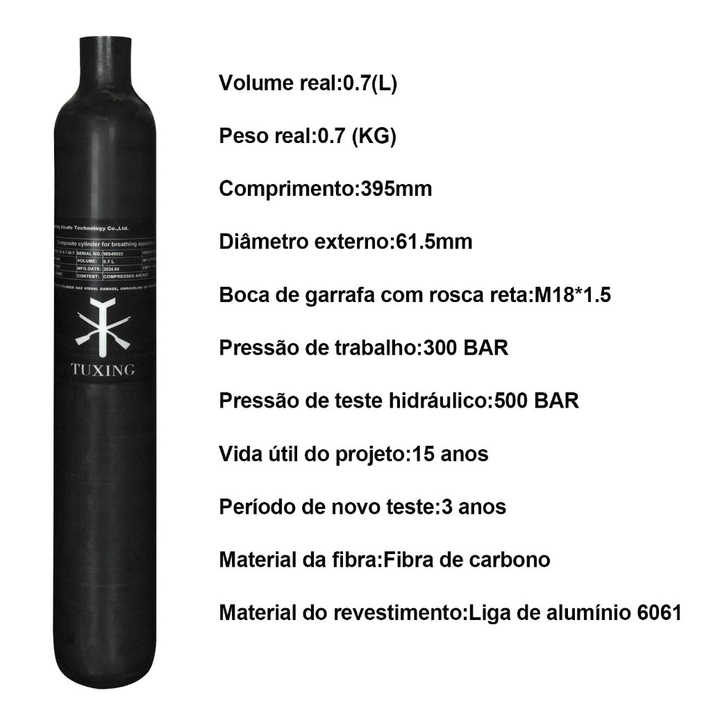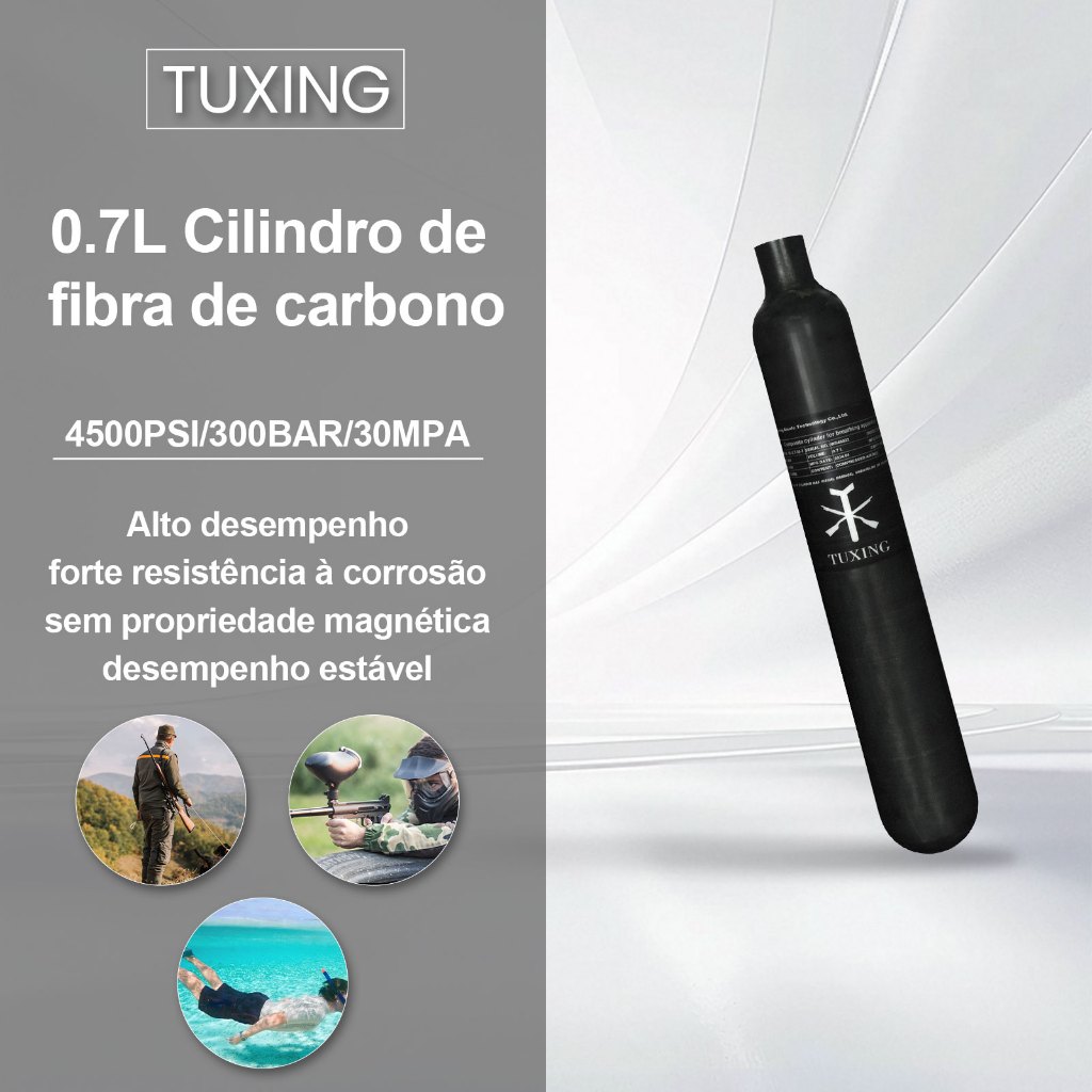 TUXING 300Bar 0,7L 700cc Cilindro de Fibra de Carbono Tanque PCP Mergulho de Alta Pressão M18*1.5