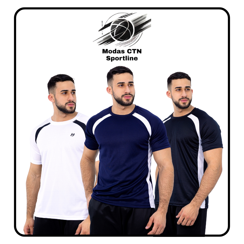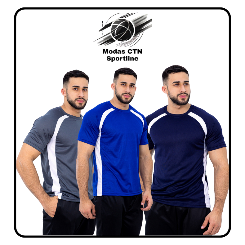 Kit 3 Camisetas Dry Fit Poliéster Masculina Treino Academia Esportes Exercício Corrida Slim Fitness
