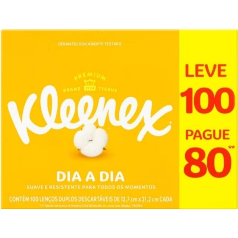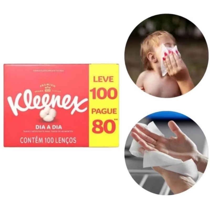 Lenço de papel kleenex descartável kit com 3 caixas leve 100 e pague 80